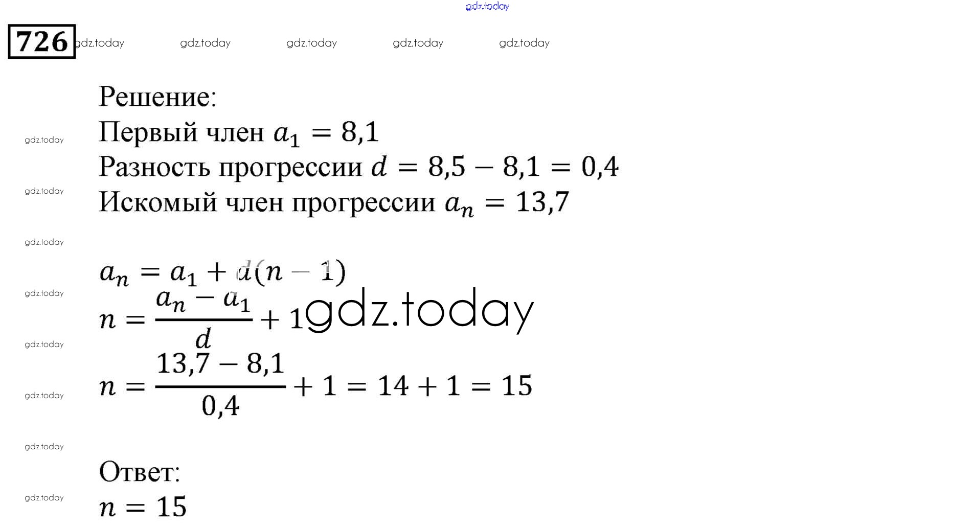 Ответы к Решение. Упражнения 726 Учебнику по Алгебре для 9 класса Мерзляк, Полонский Вентана-граф, Просвещение Алгоритм успеха 2016, 2021