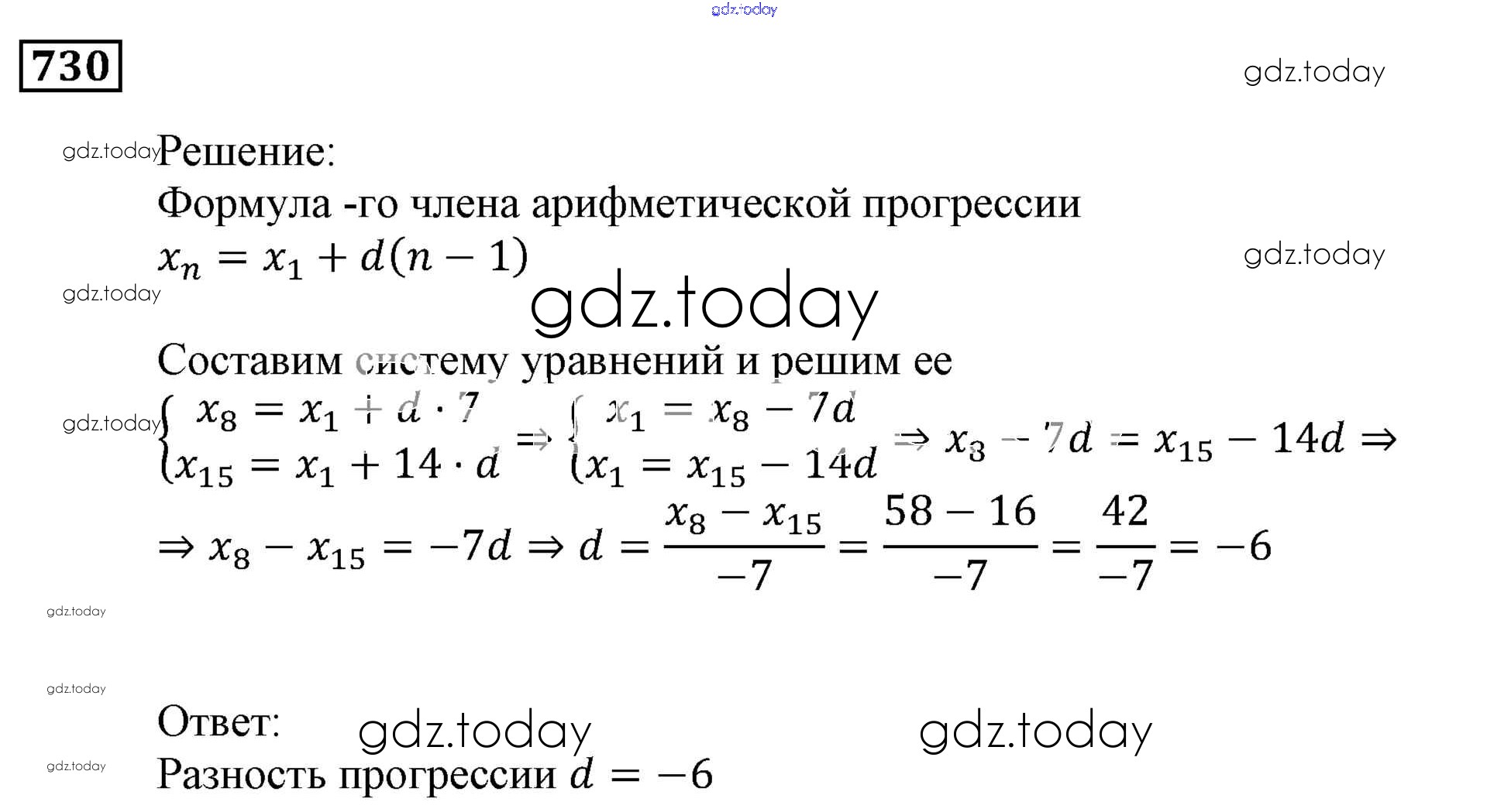 Ответы к Решение. Упражнения 730 Учебнику по Алгебре для 9 класса Мерзляк, Полонский Вентана-граф, Просвещение Алгоритм успеха 2016, 2021