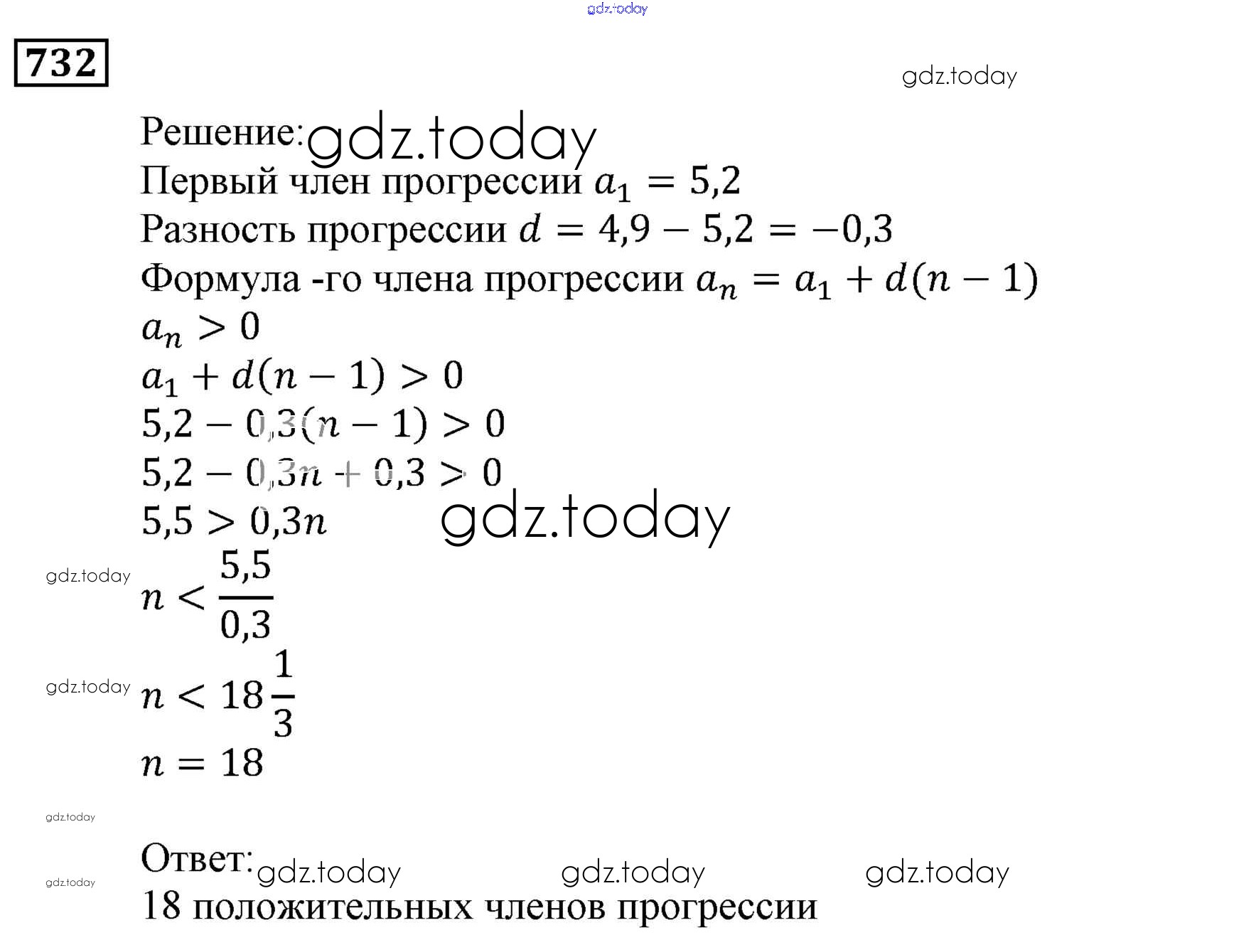 Ответы к Решение. Упражнения 732 Учебнику по Алгебре для 9 класса Мерзляк, Полонский Вентана-граф, Просвещение Алгоритм успеха 2016, 2021
