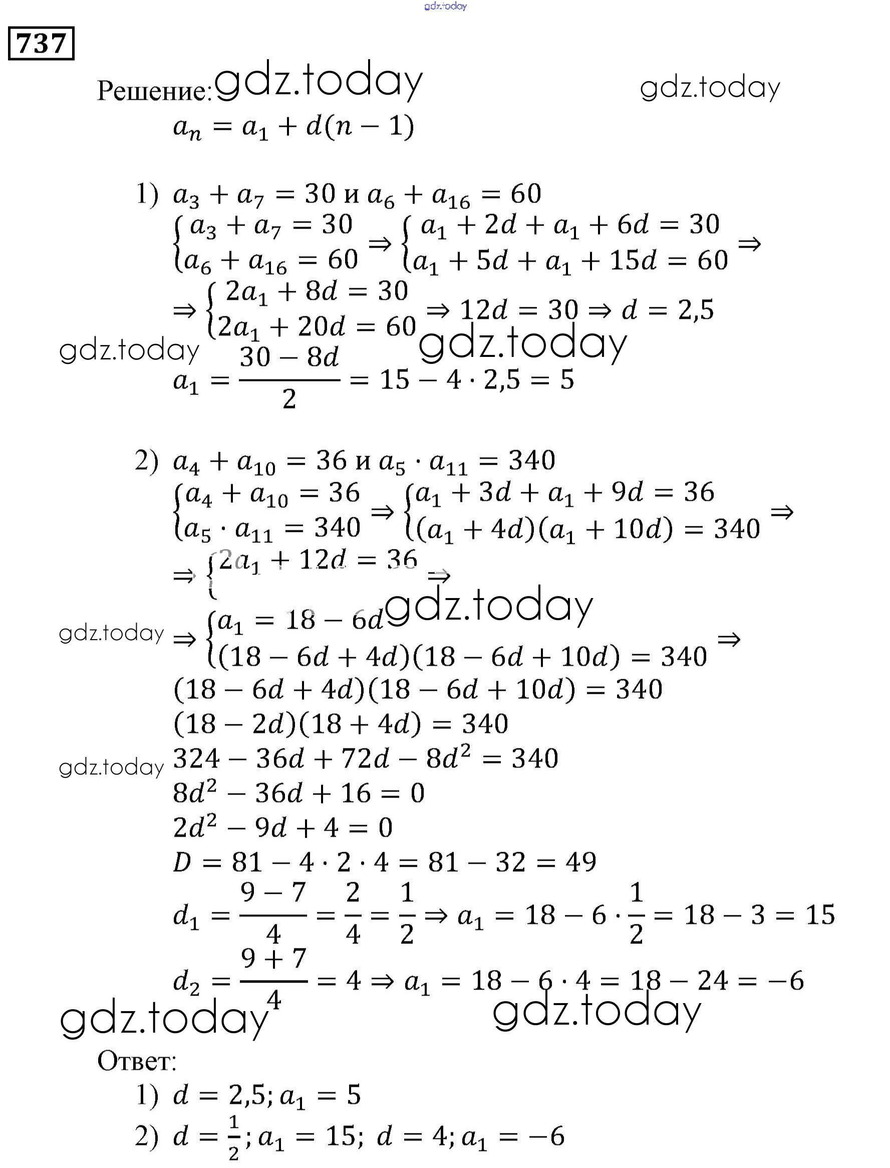 Ответы к Решение. Упражнения 737 Учебнику по Алгебре для 9 класса Мерзляк, Полонский Вентана-граф, Просвещение Алгоритм успеха 2016, 2021