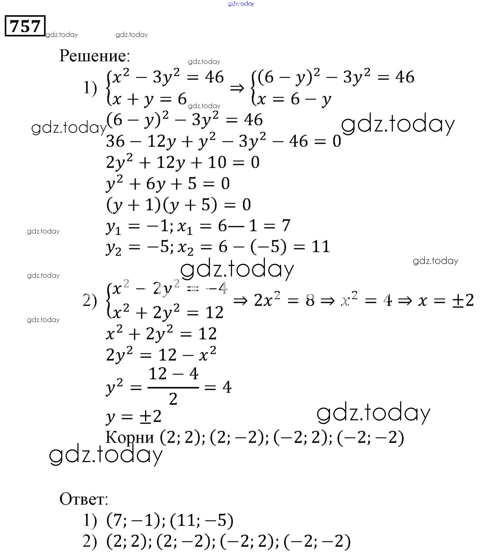 Ответы к Решение. Упражнения 757 Учебнику по Алгебре для 9 класса Мерзляк, Полонский Вентана-граф, Просвещение Алгоритм успеха 2016, 2021
