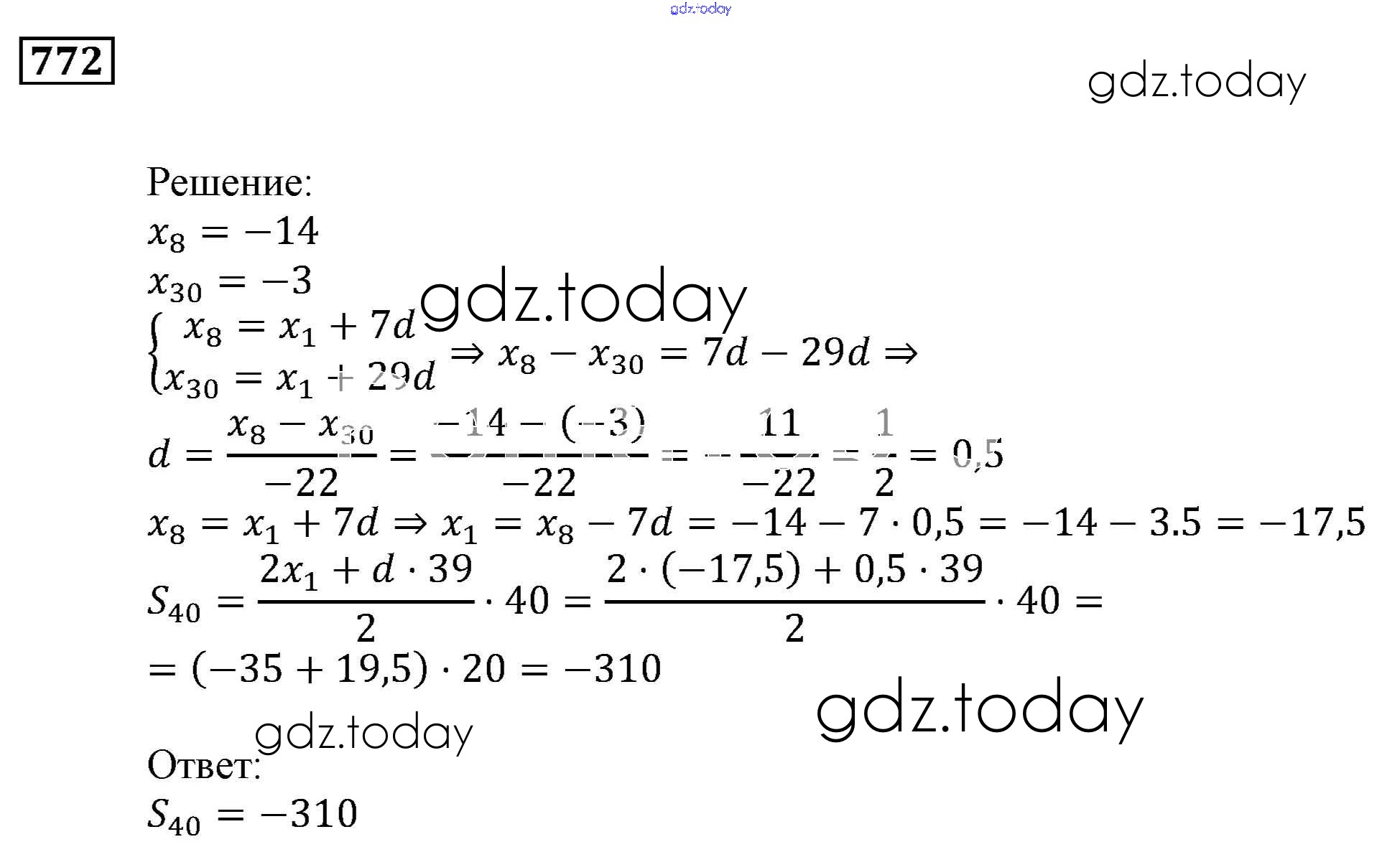 Ответы к Решение. Упражнения 772 Учебнику по Алгебре для 9 класса Мерзляк, Полонский Вентана-граф, Просвещение Алгоритм успеха 2016, 2021