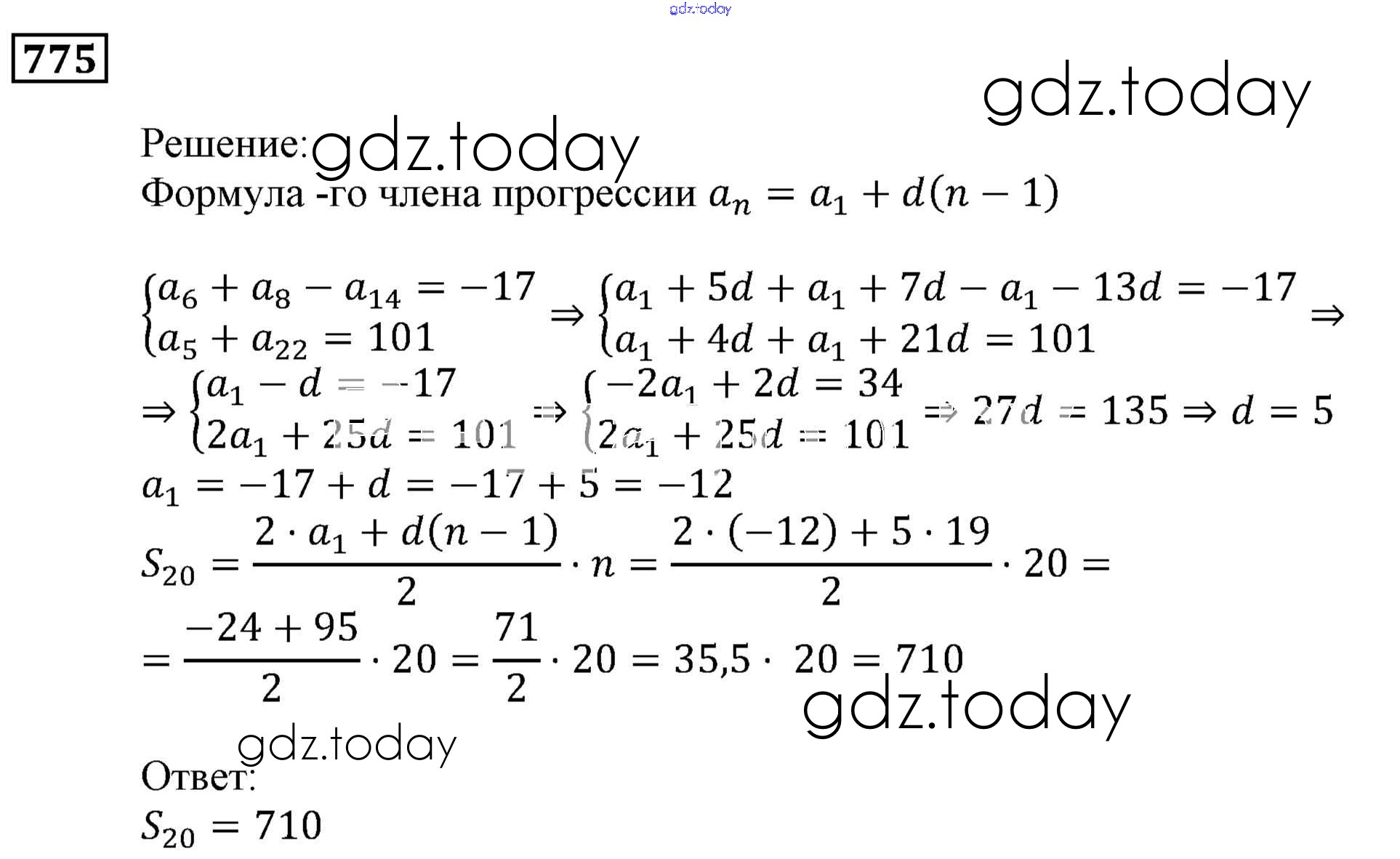 Ответы к Решение. Упражнения 775 Учебнику по Алгебре для 9 класса Мерзляк, Полонский Вентана-граф, Просвещение Алгоритм успеха 2016, 2021