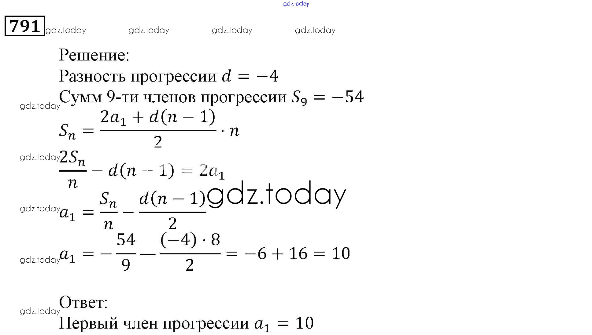 Ответы к Решение. Упражнения 791 Учебнику по Алгебре для 9 класса Мерзляк, Полонский Вентана-граф, Просвещение Алгоритм успеха 2016, 2021