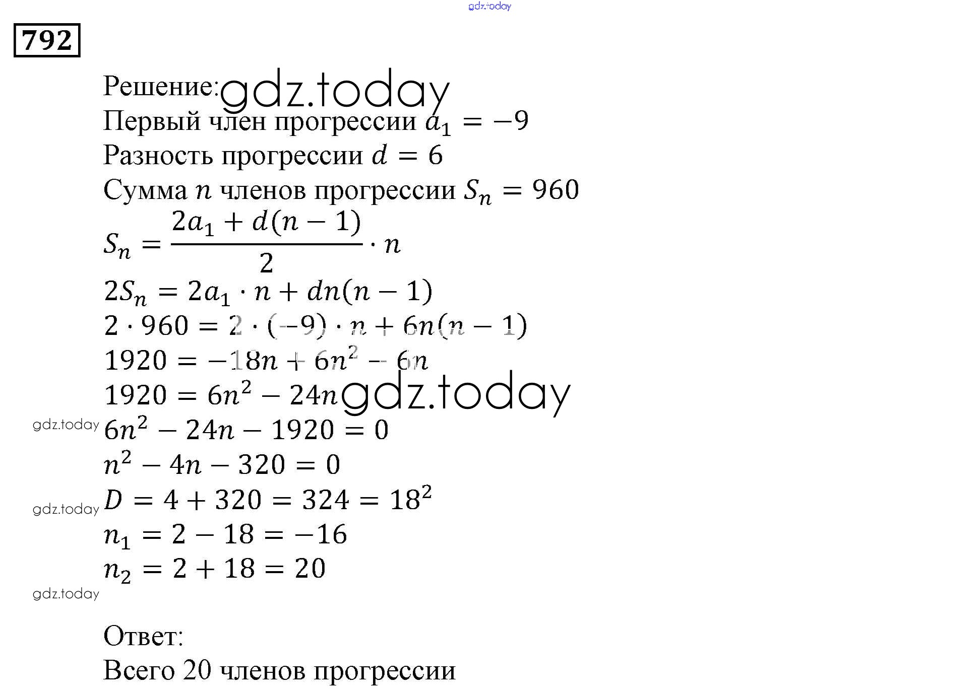 Ответы к Решение. Упражнения 792 Учебнику по Алгебре для 9 класса Мерзляк, Полонский Вентана-граф, Просвещение Алгоритм успеха 2016, 2021