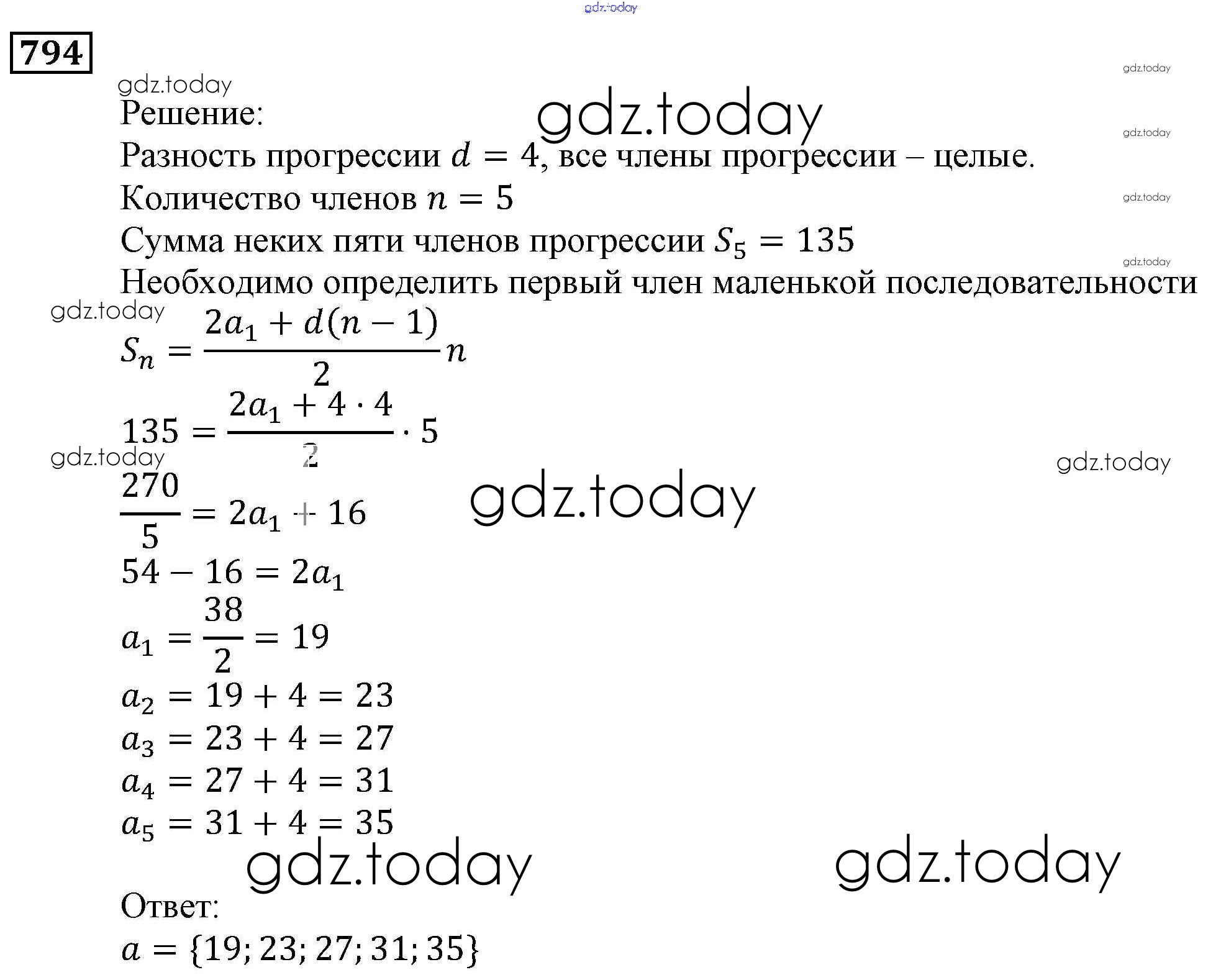 Ответы к Решение. Упражнения 794 Учебнику по Алгебре для 9 класса Мерзляк, Полонский Вентана-граф, Просвещение Алгоритм успеха 2016, 2021