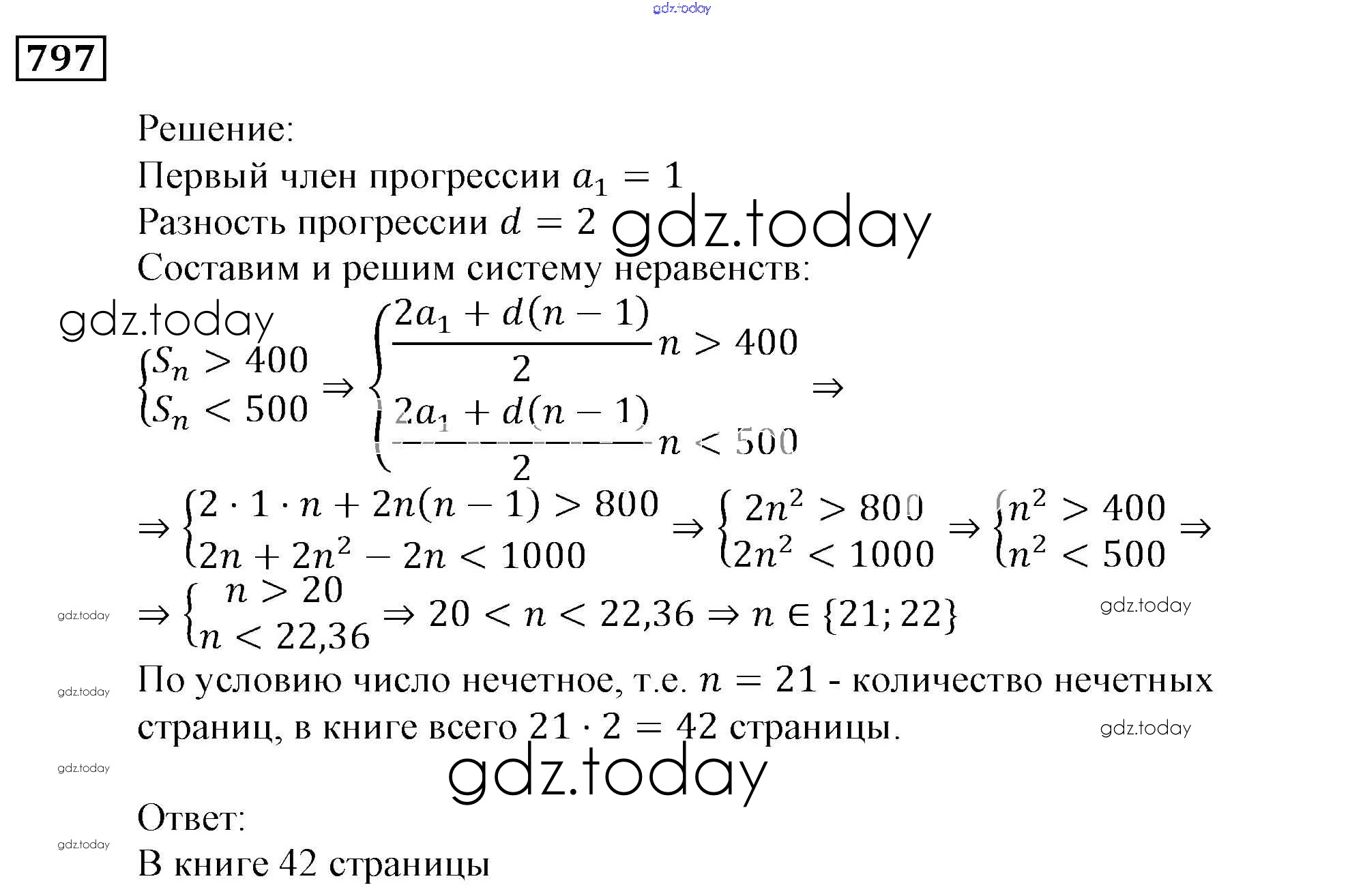 Ответы к Решение. Упражнения 797 Учебнику по Алгебре для 9 класса Мерзляк, Полонский Вентана-граф, Просвещение Алгоритм успеха 2016, 2021