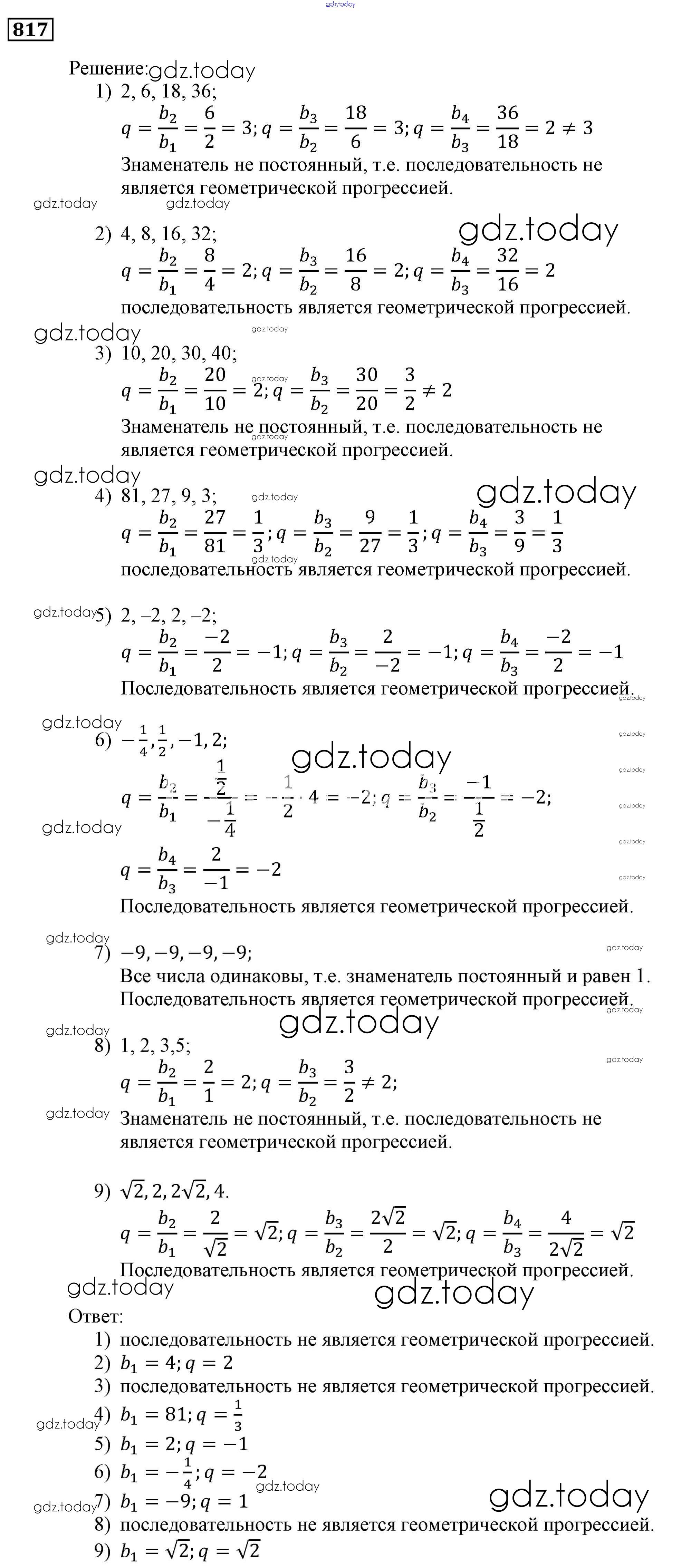 Ответы к Решение. Упражнения 817 Учебнику по Алгебре для 9 класса Мерзляк, Полонский Вентана-граф, Просвещение Алгоритм успеха 2016, 2021