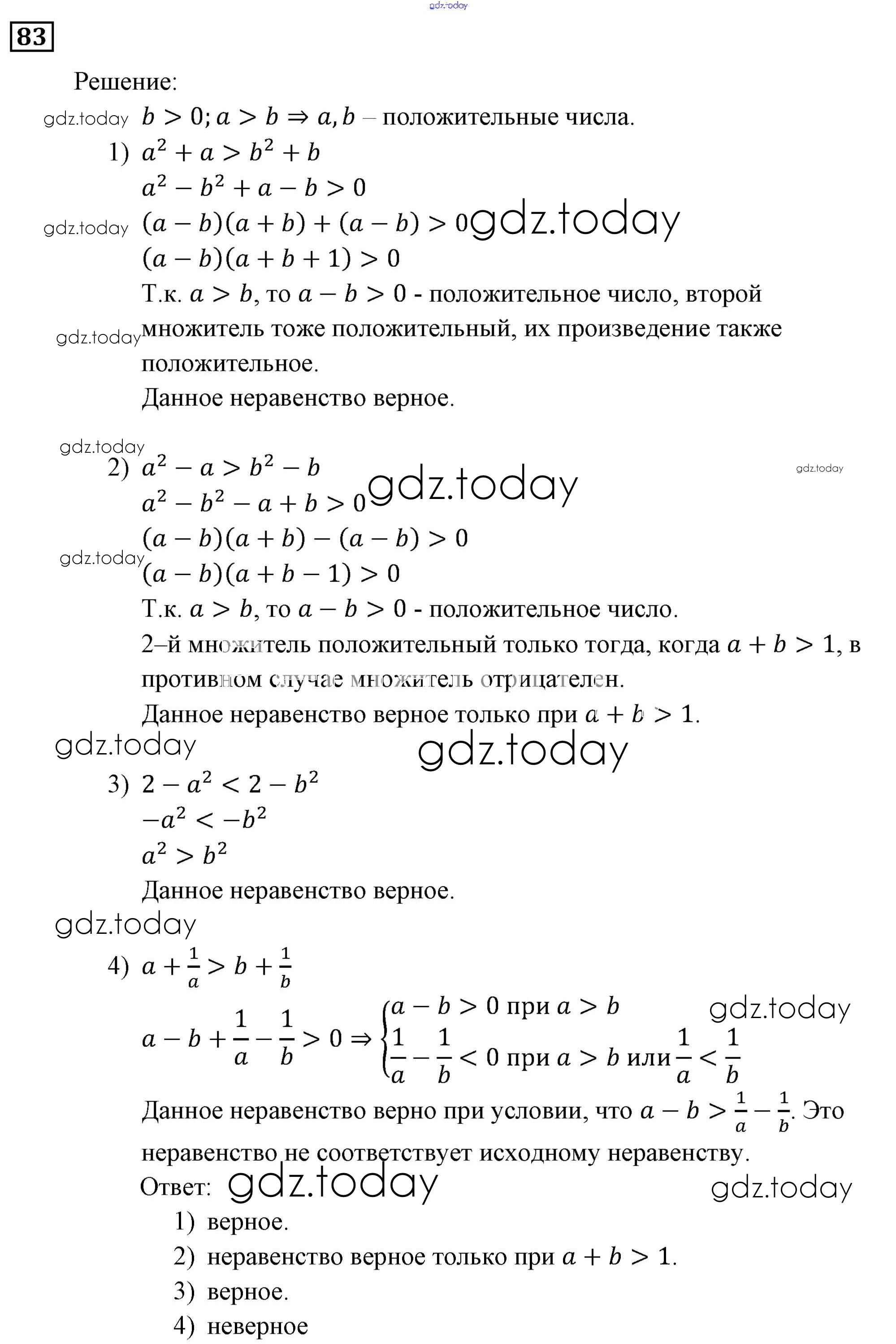 Ответы к Решение. Упражнения 83 Учебнику по Алгебре для 9 класса Мерзляк, Полонский Вентана-граф, Просвещение Алгоритм успеха 2016, 2021