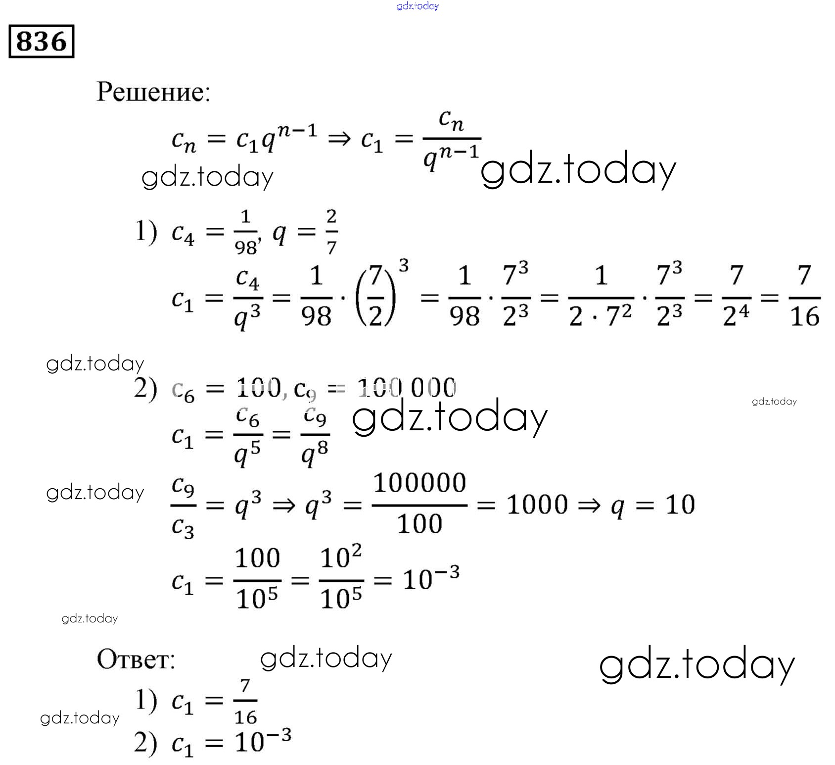 Ответы к Решение. Упражнения 836 Учебнику по Алгебре для 9 класса Мерзляк, Полонский Вентана-граф, Просвещение Алгоритм успеха 2016, 2021