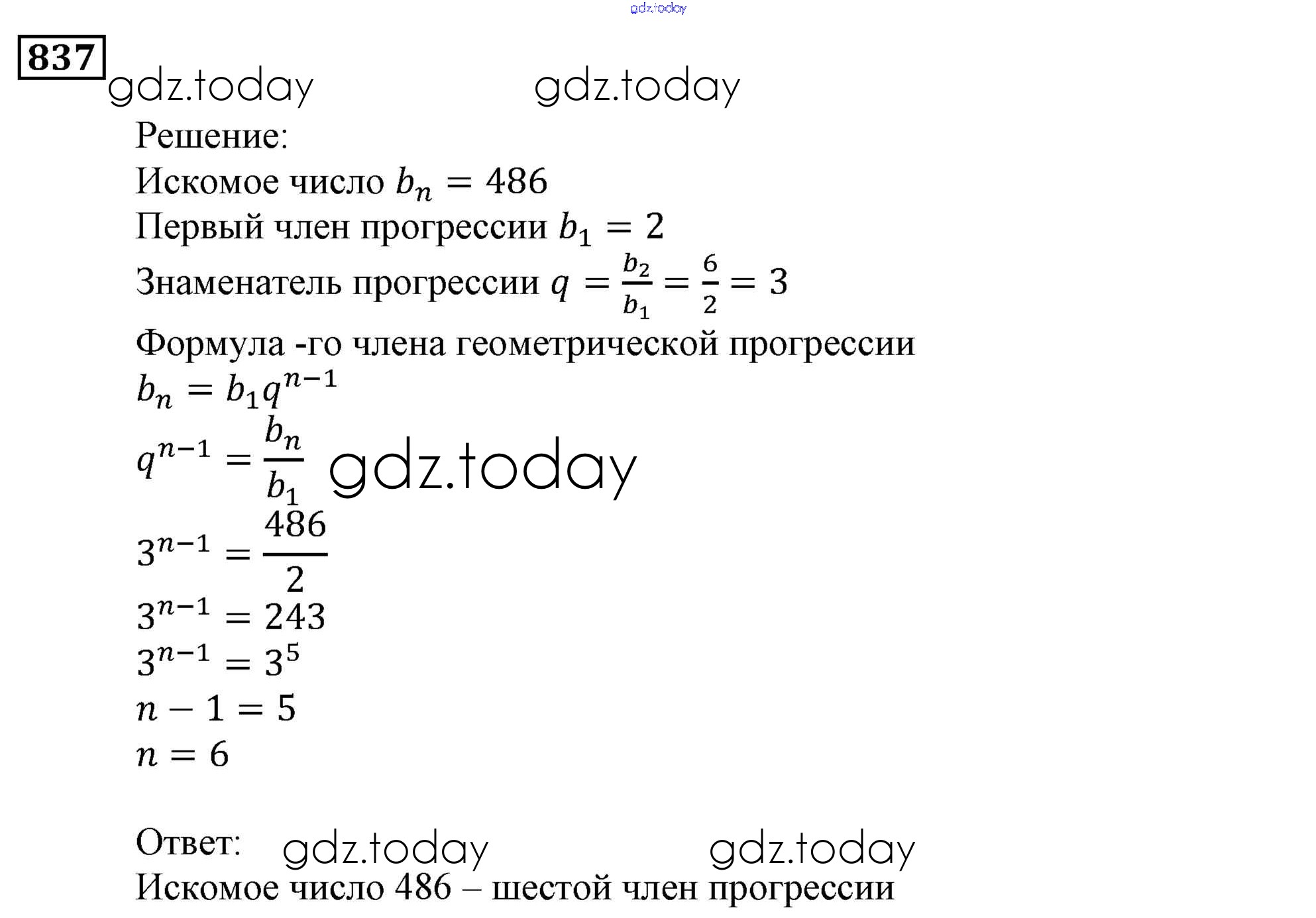 Ответы к Решение. Упражнения 837 Учебнику по Алгебре для 9 класса Мерзляк, Полонский Вентана-граф, Просвещение Алгоритм успеха 2016, 2021