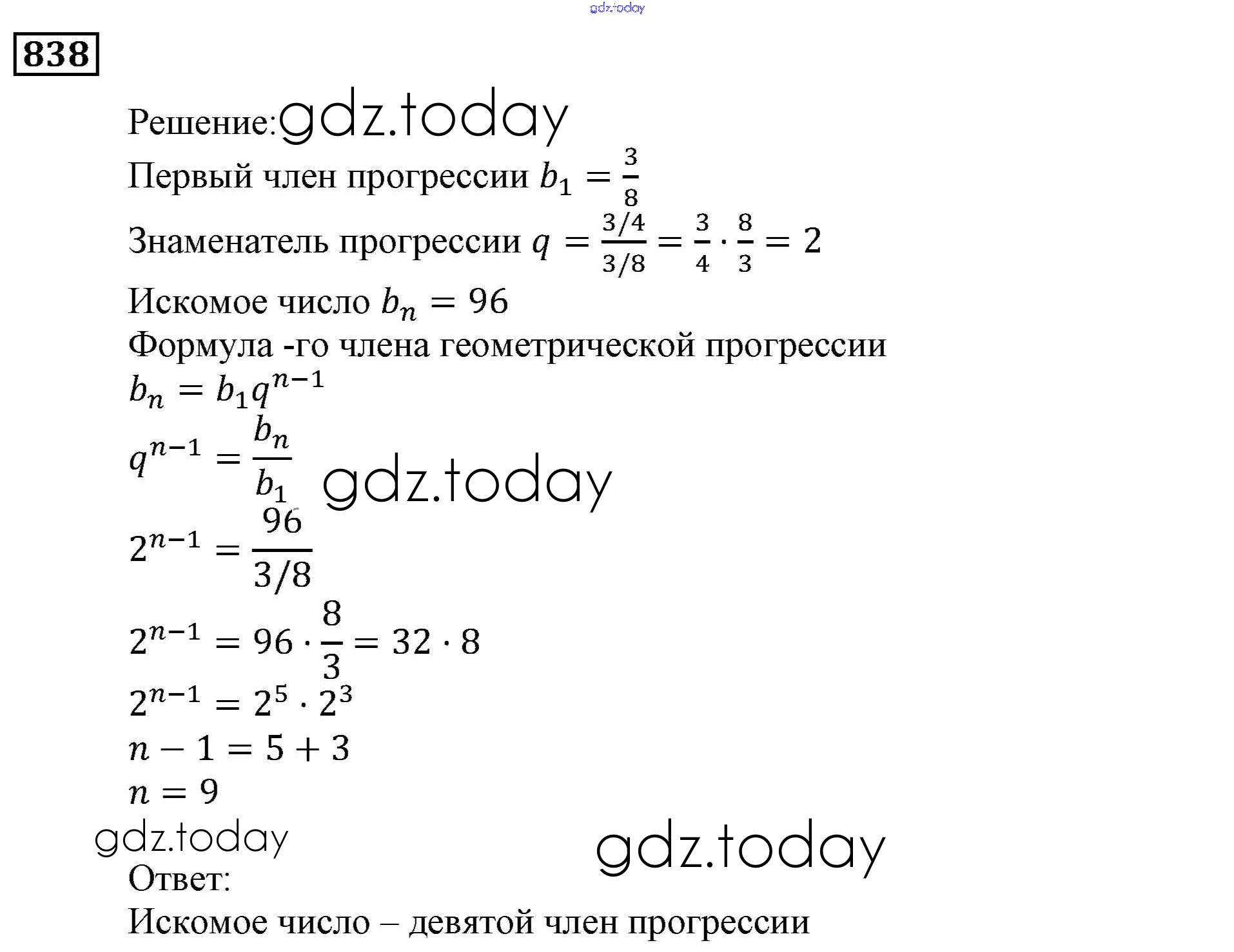 Ответы к Решение. Упражнения 838 Учебнику по Алгебре для 9 класса Мерзляк, Полонский Вентана-граф, Просвещение Алгоритм успеха 2016, 2021