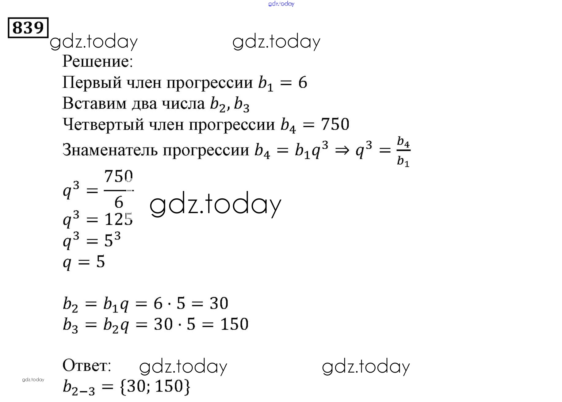 Ответы к Решение. Упражнения 839 Учебнику по Алгебре для 9 класса Мерзляк, Полонский Вентана-граф, Просвещение Алгоритм успеха 2016, 2021