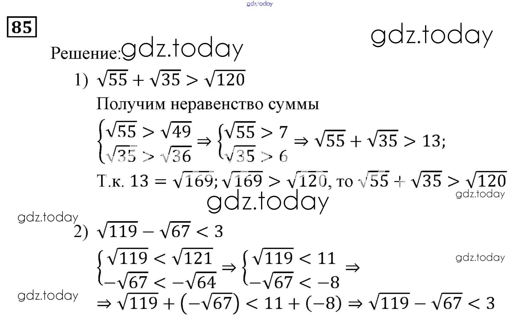 Ответы к Решение. Упражнения 85 Учебнику по Алгебре для 9 класса Мерзляк, Полонский Вентана-граф, Просвещение Алгоритм успеха 2016, 2021