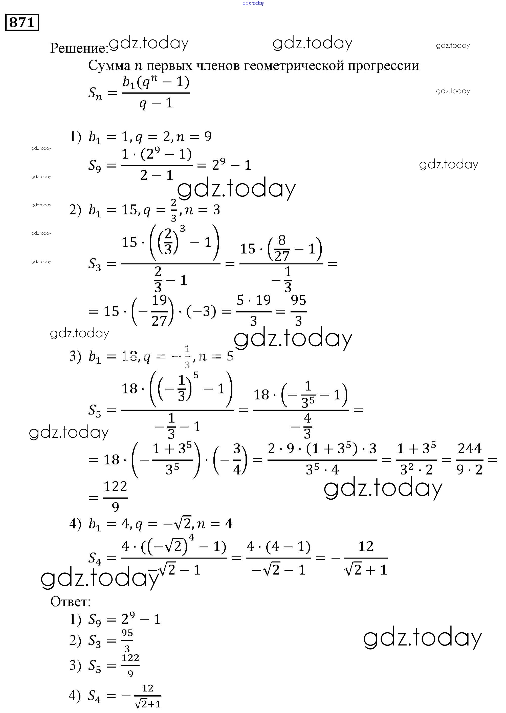 Ответы к Решение. Упражнения 871 Учебнику по Алгебре для 9 класса Мерзляк, Полонский Вентана-граф, Просвещение Алгоритм успеха 2016, 2021