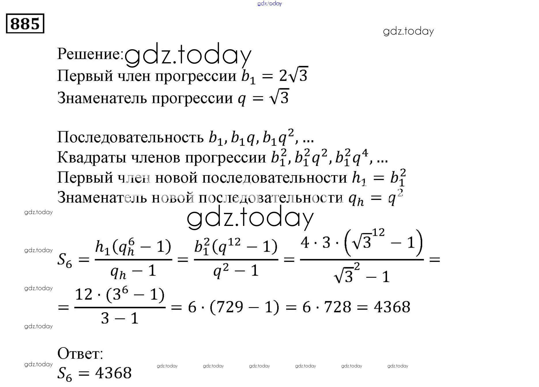 Ответы к Решение. Упражнения 885 Учебнику по Алгебре для 9 класса Мерзляк, Полонский Вентана-граф, Просвещение Алгоритм успеха 2016, 2021