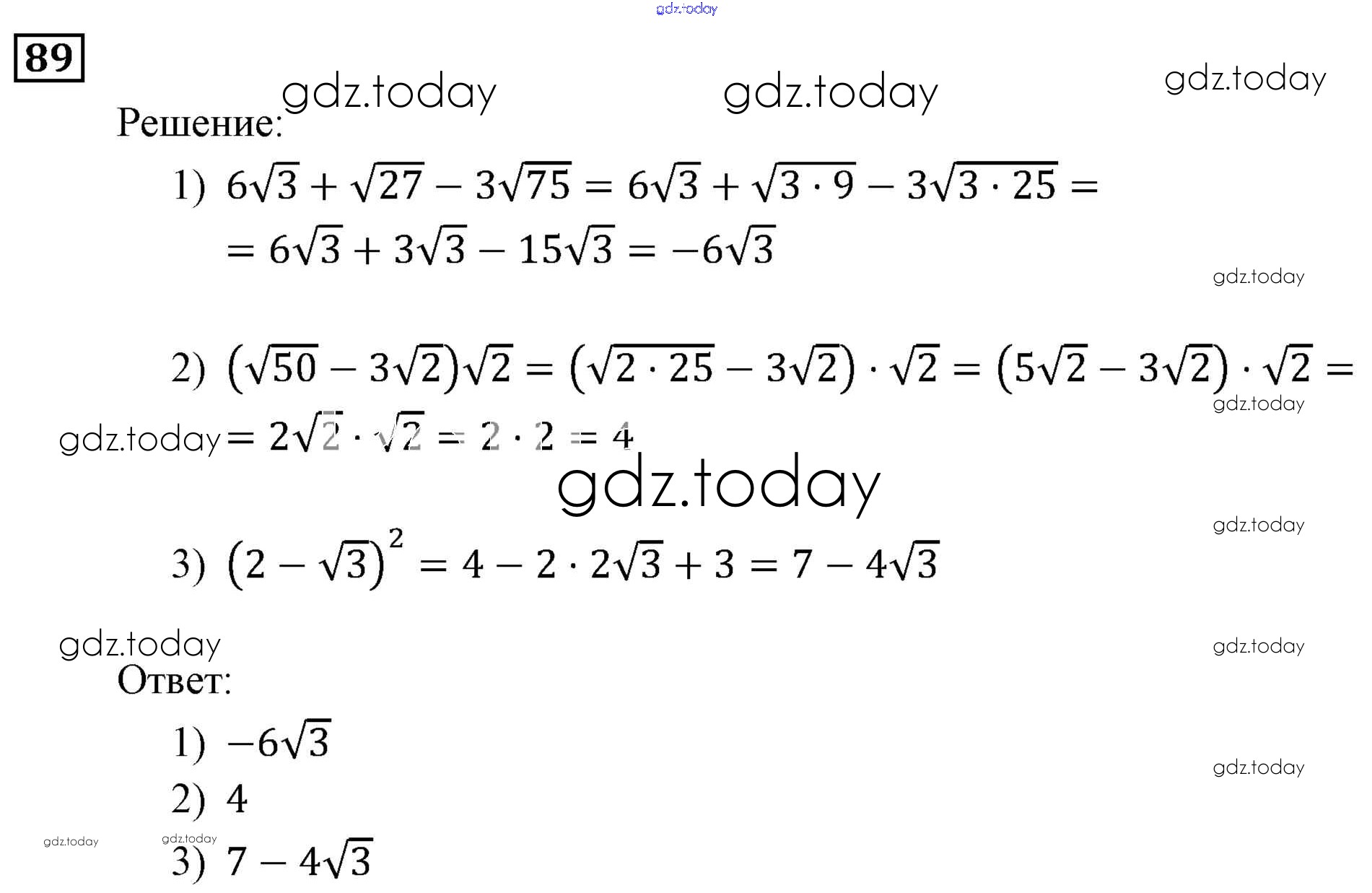 На страницах сайта gdz.today вы найдете учебный и вспомогательный материал, направленный на улучшения знаний школьной программы. ГДЗ - онлайн мир знаний Решение. Упражнения 89 Учебнику по Алгебре для 9 класса Мерзляк, Полонский Вентана-граф, Просвещение Алгоритм успеха 2016, 2021