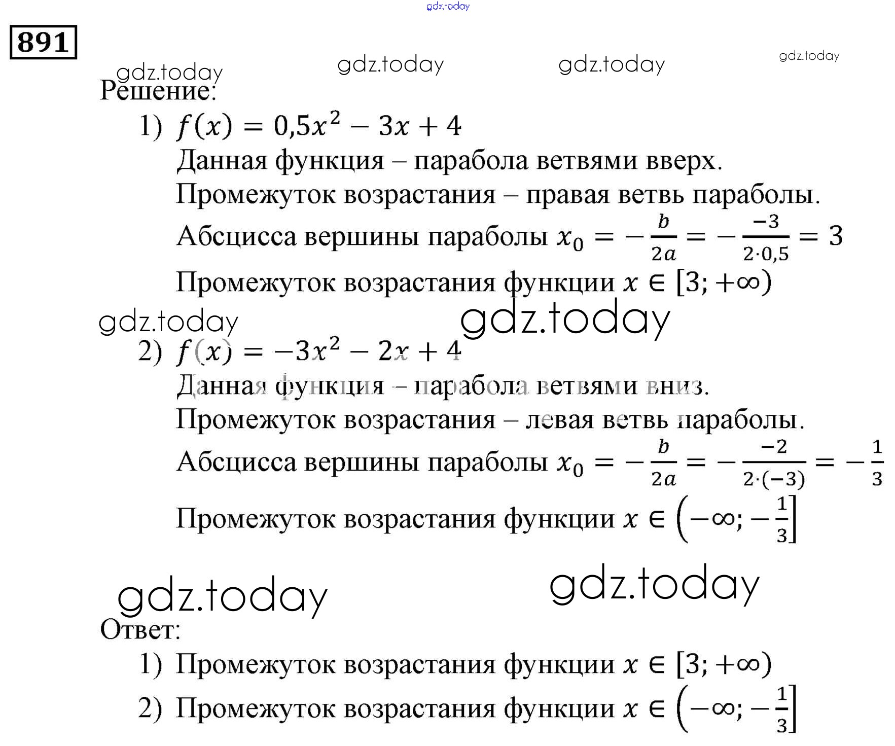 Ответы к Решение. Упражнения 891 Учебнику по Алгебре для 9 класса Мерзляк, Полонский Вентана-граф, Просвещение Алгоритм успеха 2016, 2021