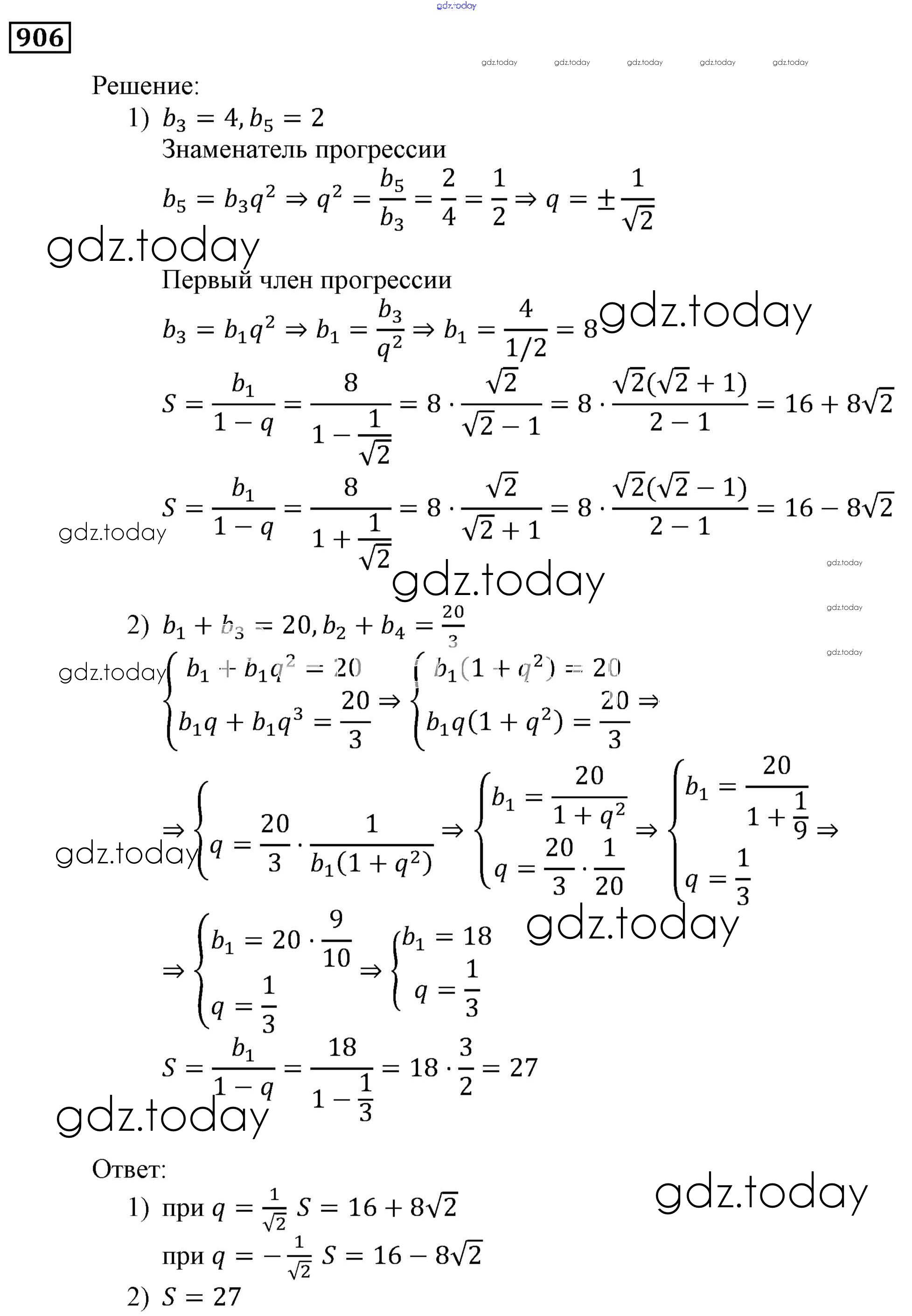 Ответы к Решение. Упражнения 906 Учебнику по Алгебре для 9 класса Мерзляк, Полонский Вентана-граф, Просвещение Алгоритм успеха 2016, 2021