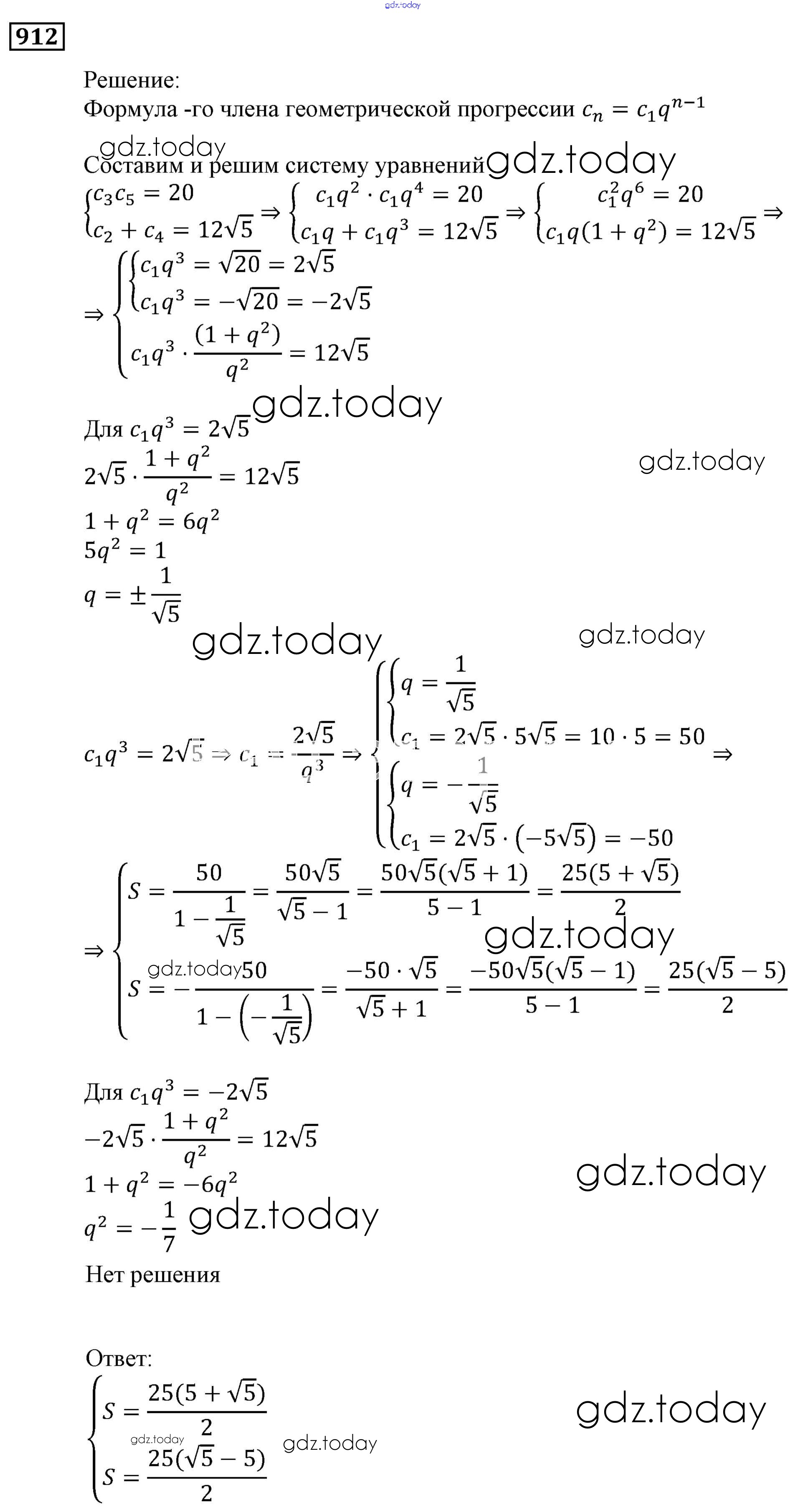 Ответы к Решение. Упражнения 912 Учебнику по Алгебре для 9 класса Мерзляк, Полонский Вентана-граф, Просвещение Алгоритм успеха 2016, 2021