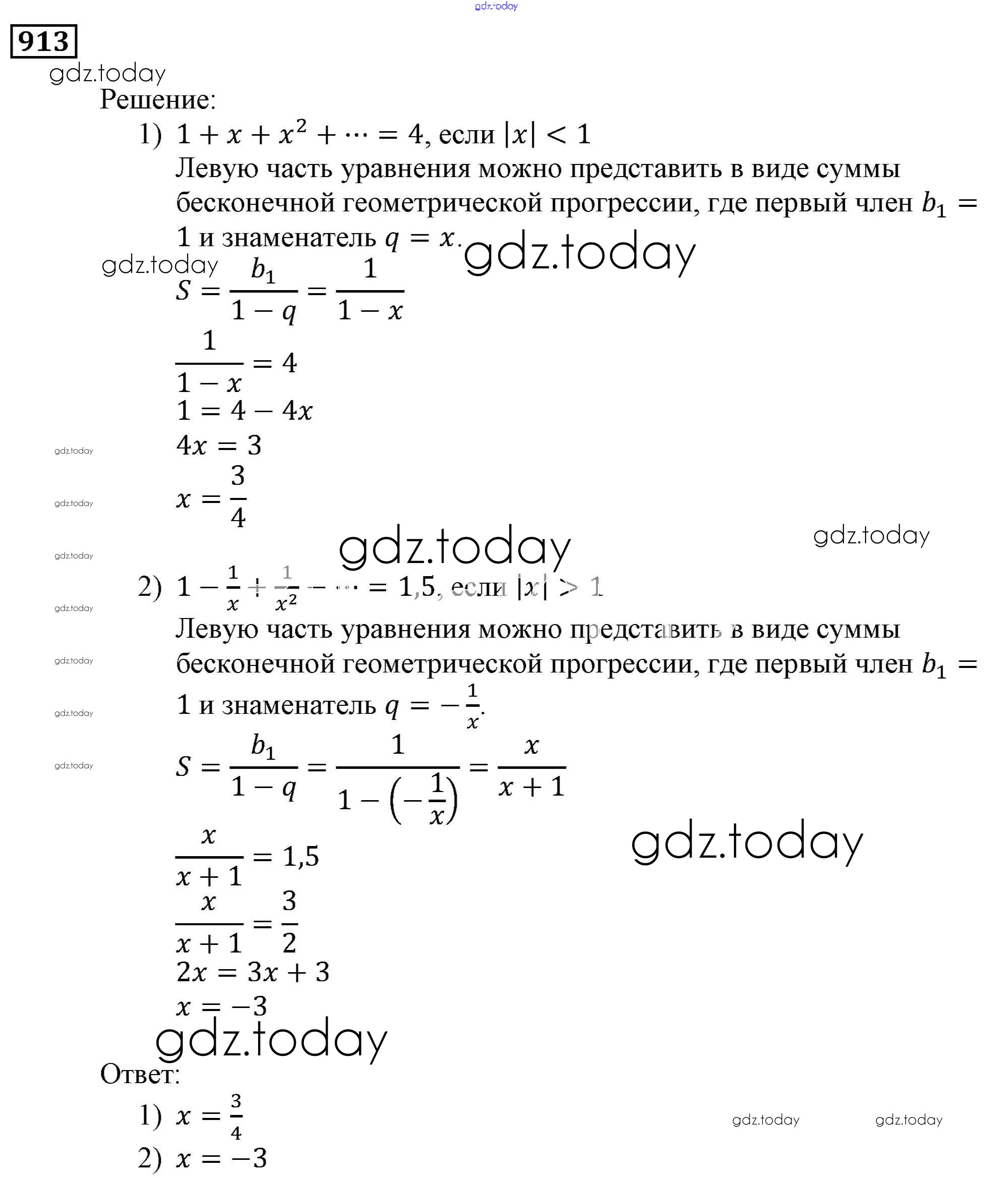 Ответы к Решение. Упражнения 913 Учебнику по Алгебре для 9 класса Мерзляк, Полонский Вентана-граф, Просвещение Алгоритм успеха 2016, 2021
