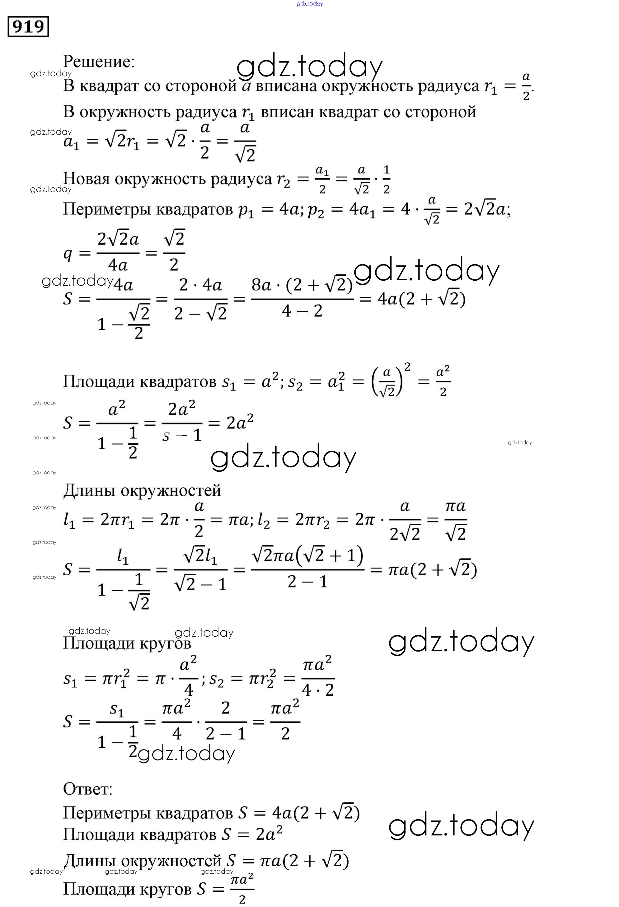 Ответы к Решение. Упражнения 919 Учебнику по Алгебре для 9 класса Мерзляк, Полонский Вентана-граф, Просвещение Алгоритм успеха 2016, 2021