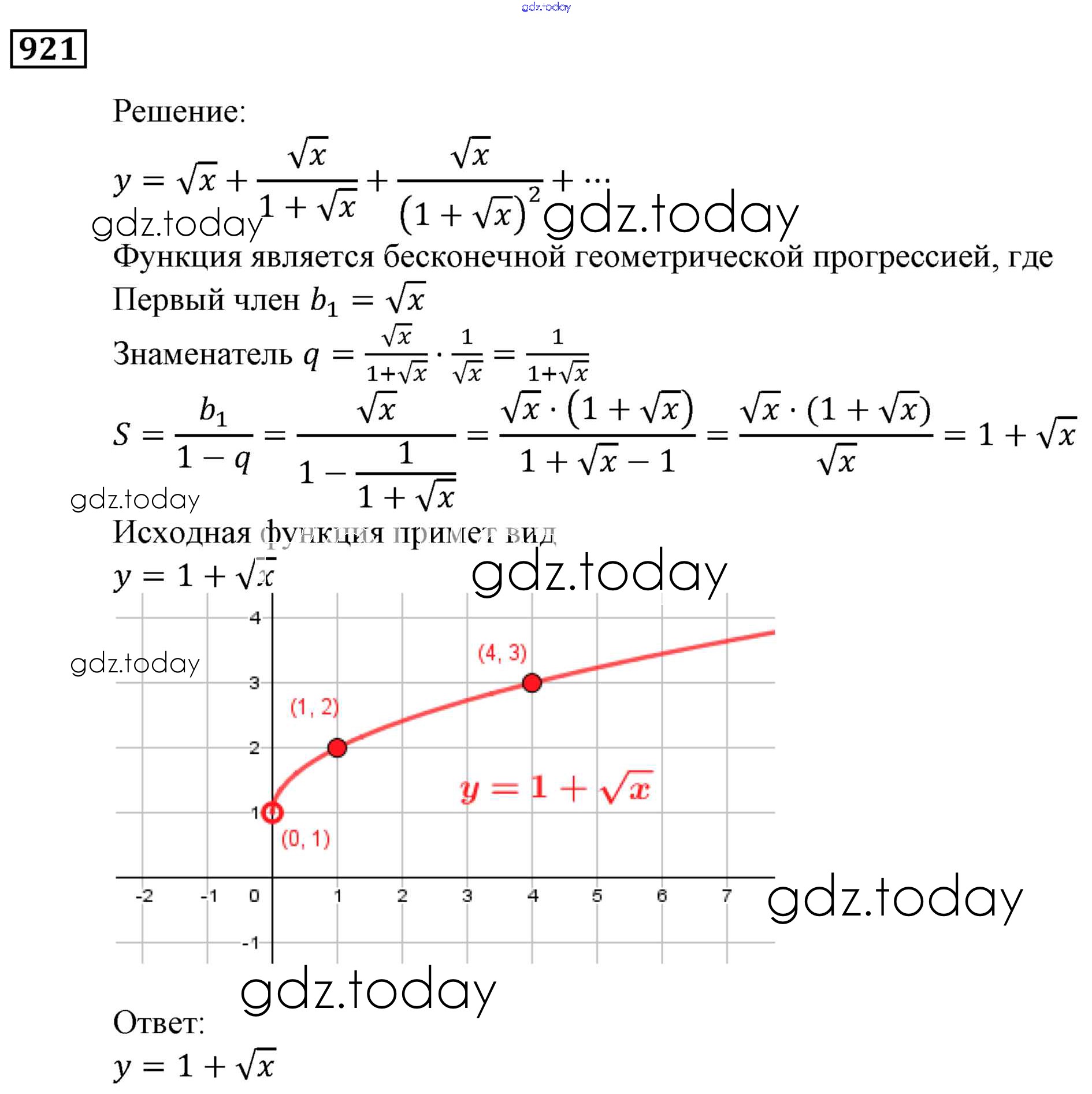 Ответы к Решение. Упражнения 921 Учебнику по Алгебре для 9 класса Мерзляк, Полонский Вентана-граф, Просвещение Алгоритм успеха 2016, 2021