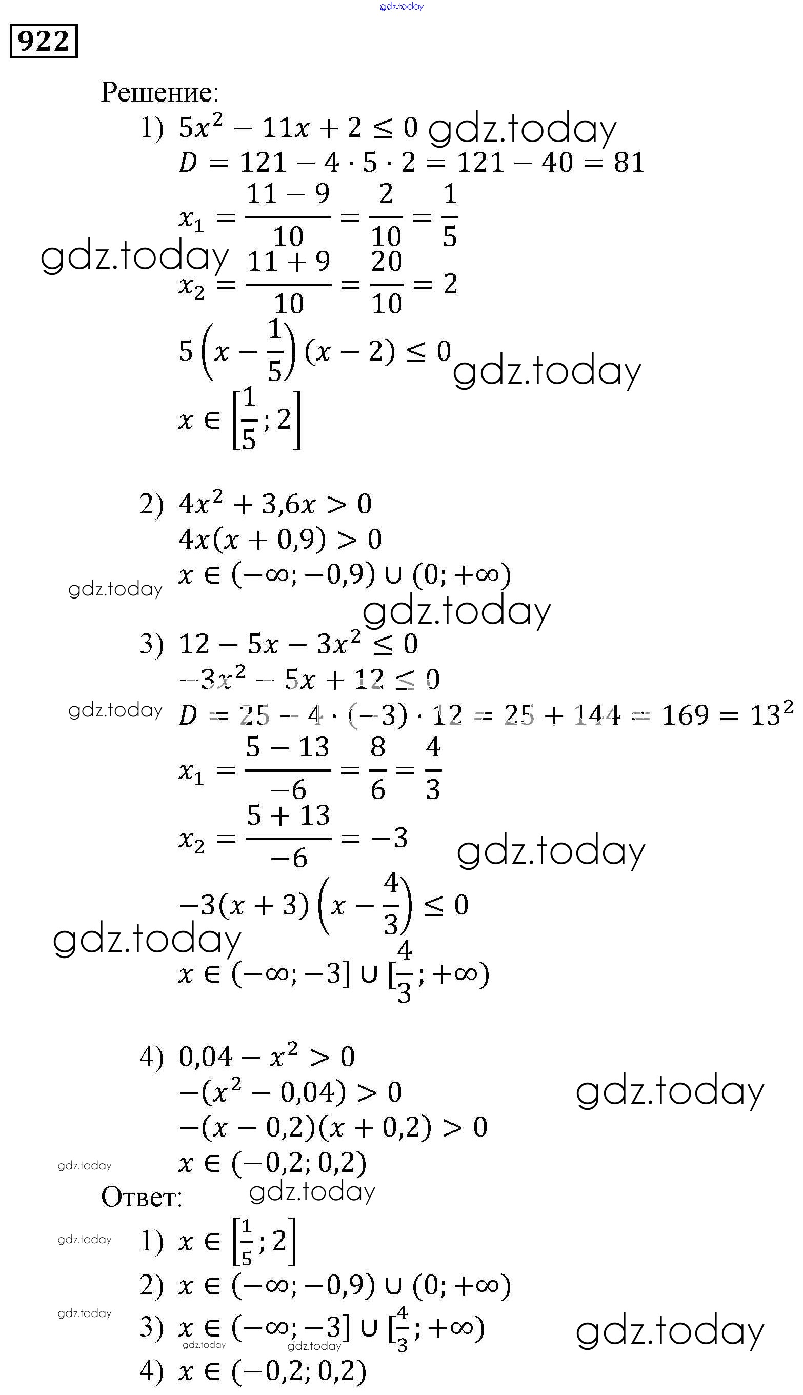 Ответы к Решение. Упражнения 922 Учебнику по Алгебре для 9 класса Мерзляк, Полонский Вентана-граф, Просвещение Алгоритм успеха 2016, 2021