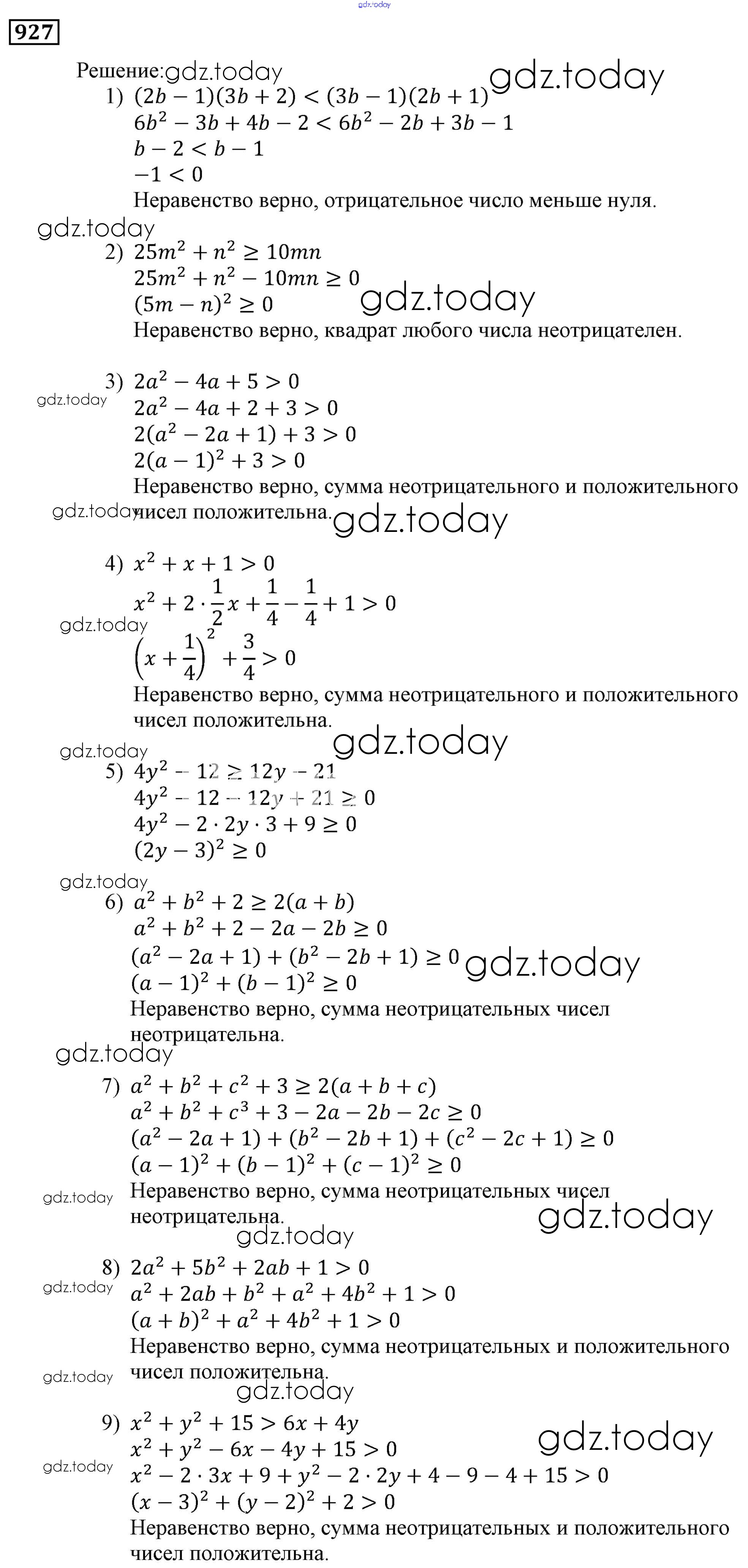 Ответы к Решение. Упражнения 927 Учебнику по Алгебре для 9 класса Мерзляк, Полонский Вентана-граф, Просвещение Алгоритм успеха 2016, 2021