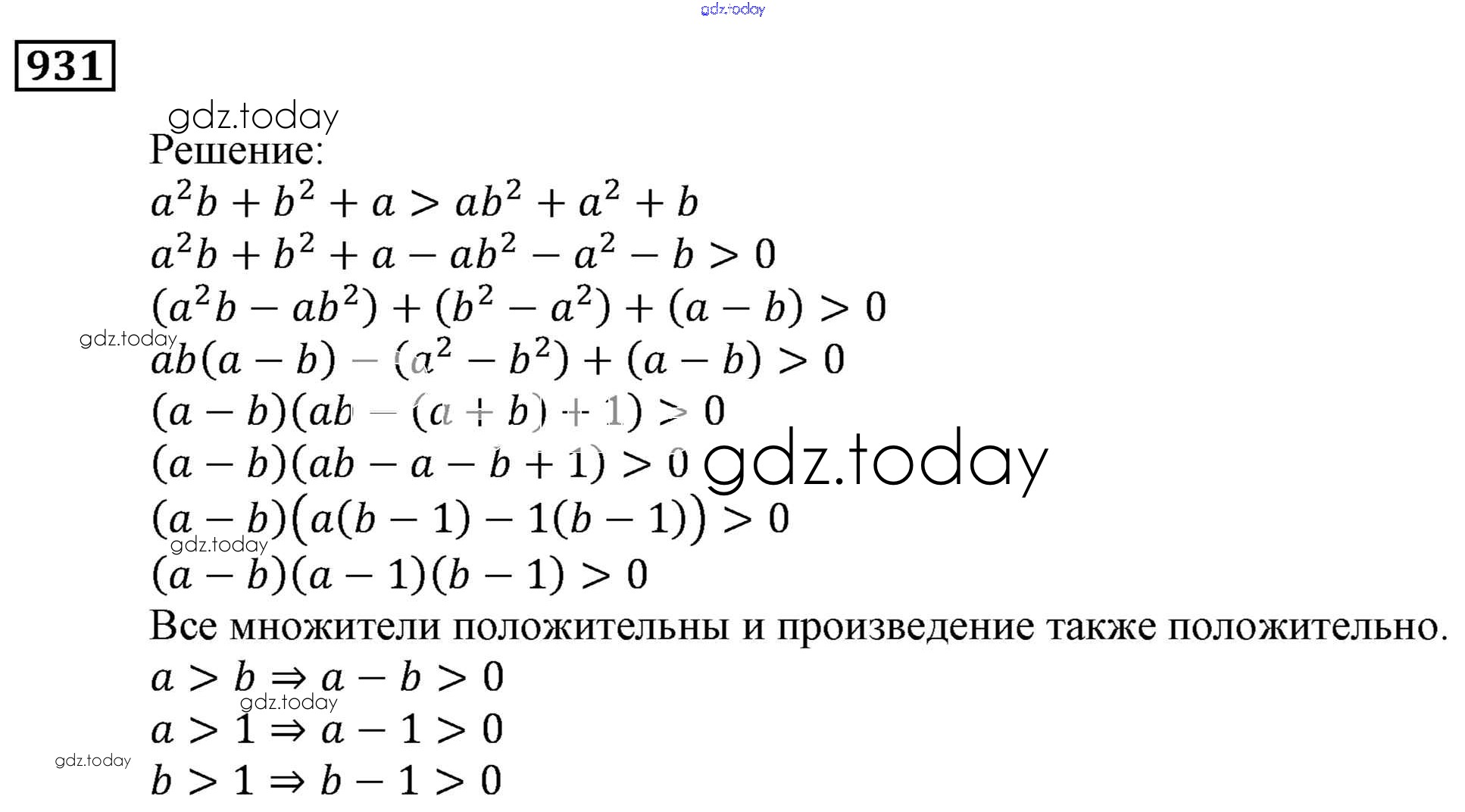 Ответы к Решение. Упражнения 931 Учебнику по Алгебре для 9 класса Мерзляк, Полонский Вентана-граф, Просвещение Алгоритм успеха 2016, 2021