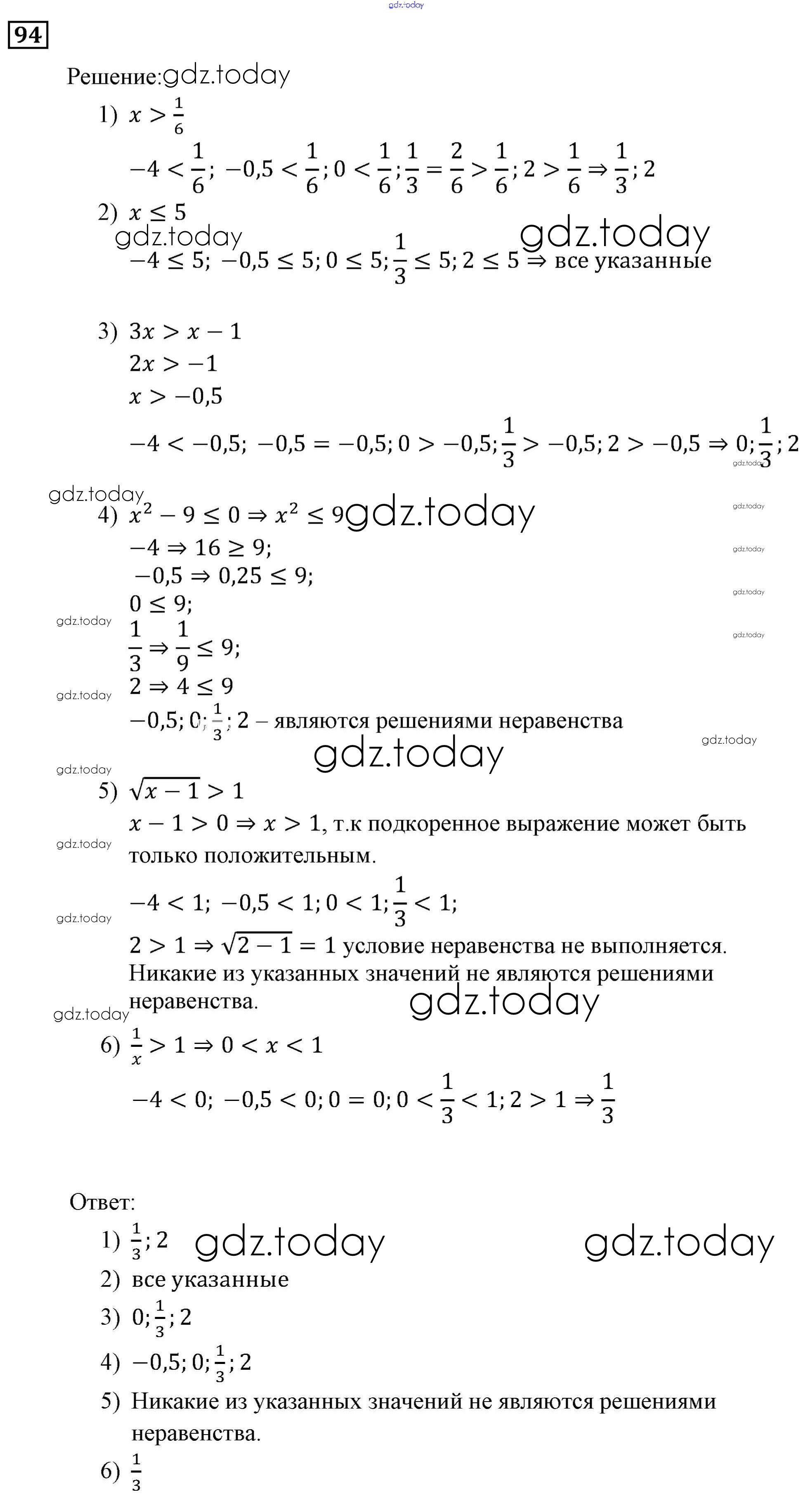 Ответы к Решение. Упражнения 94 Учебнику по Алгебре для 9 класса Мерзляк, Полонский Вентана-граф, Просвещение Алгоритм успеха 2016, 2021