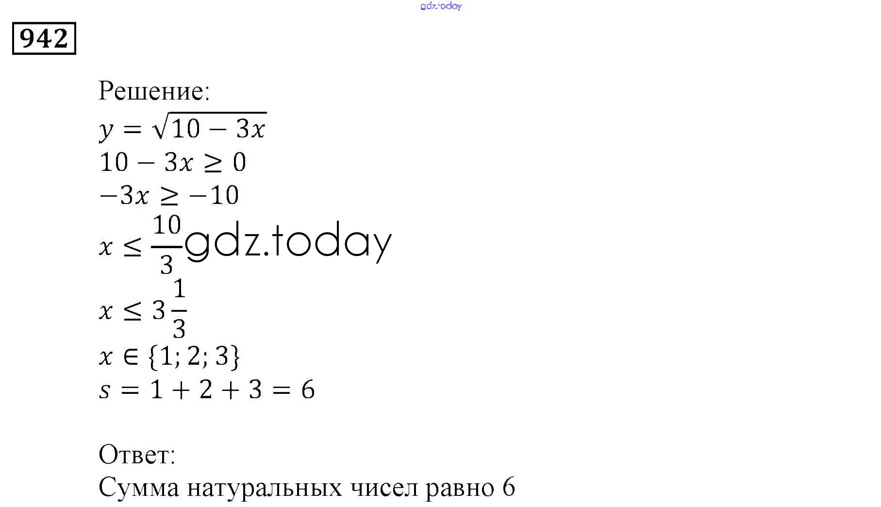 Ответы к Решение. Упражнения 942 Учебнику по Алгебре для 9 класса Мерзляк, Полонский Вентана-граф, Просвещение Алгоритм успеха 2016, 2021