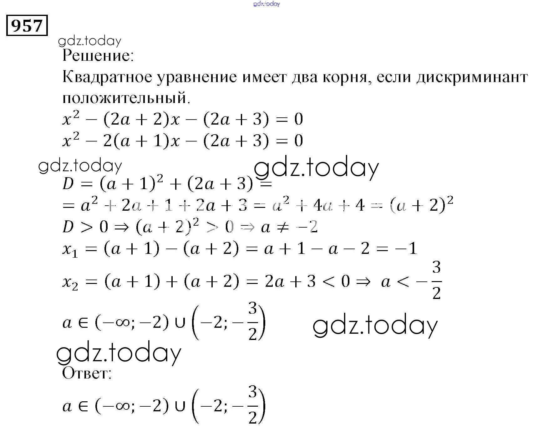Ответы к Решение. Упражнения 957 Учебнику по Алгебре для 9 класса Мерзляк, Полонский Вентана-граф, Просвещение Алгоритм успеха 2016, 2021