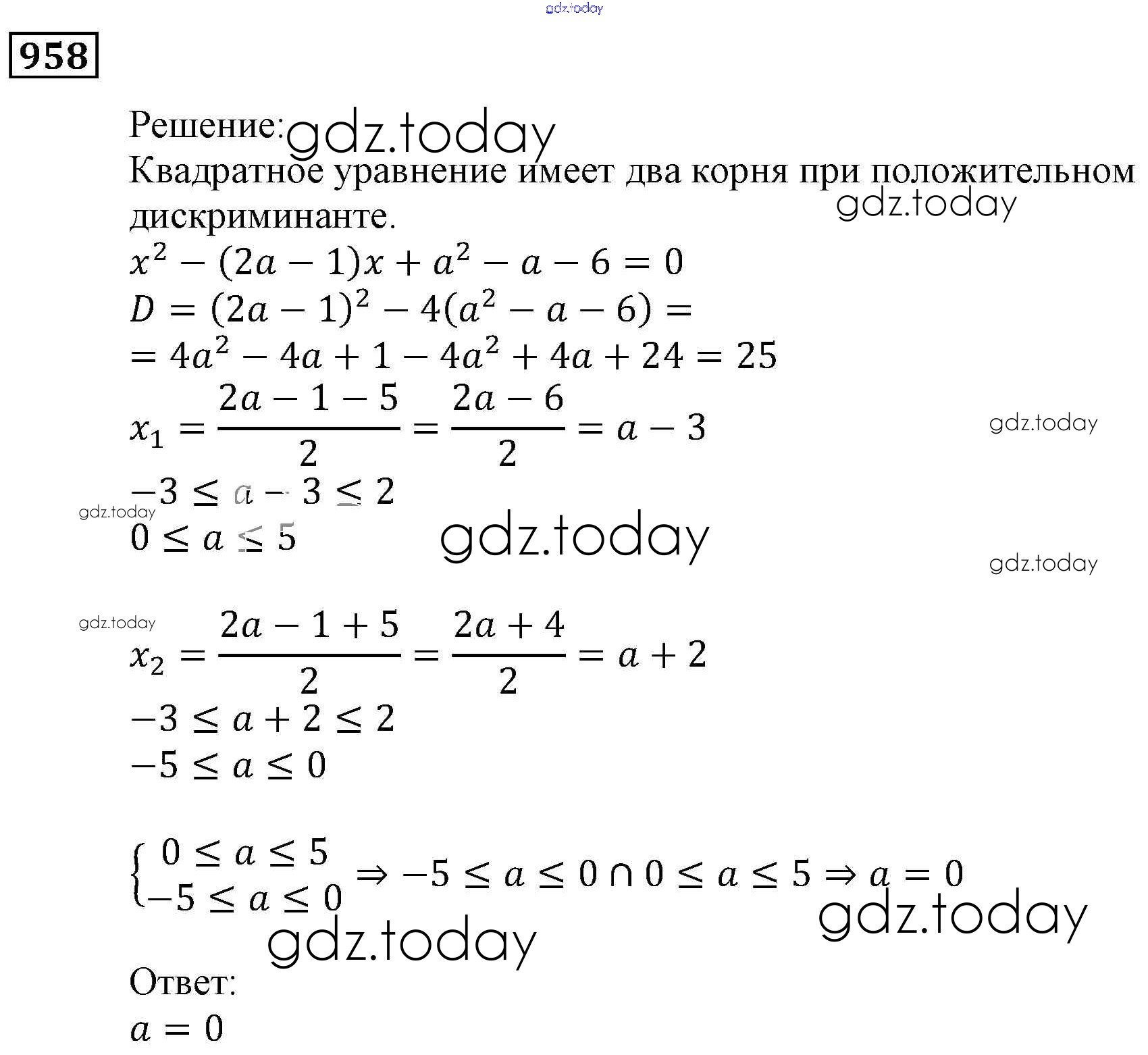 Ответы к Решение. Упражнения 958 Учебнику по Алгебре для 9 класса Мерзляк, Полонский Вентана-граф, Просвещение Алгоритм успеха 2016, 2021