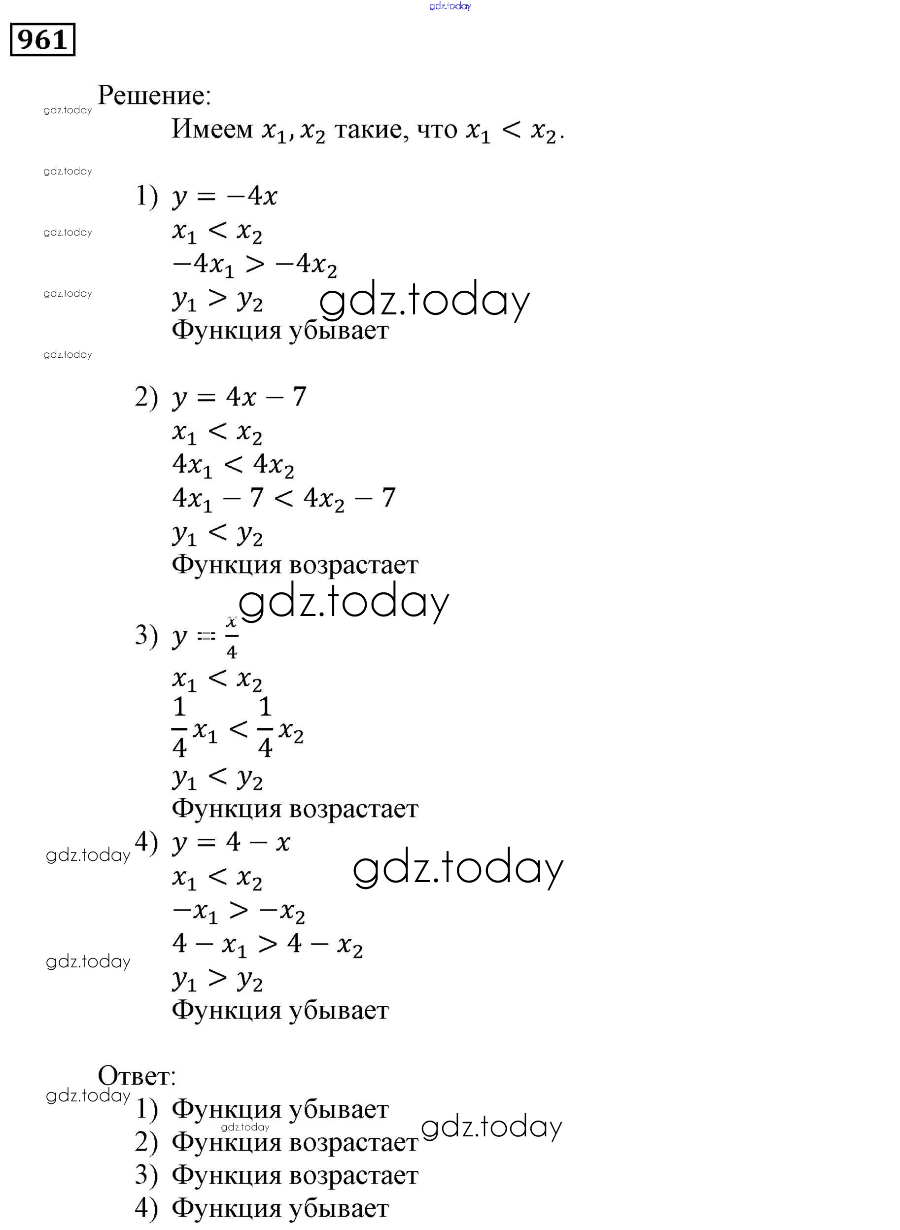 Ответы к Решение. Упражнения 961 Учебнику по Алгебре для 9 класса Мерзляк, Полонский Вентана-граф, Просвещение Алгоритм успеха 2016, 2021