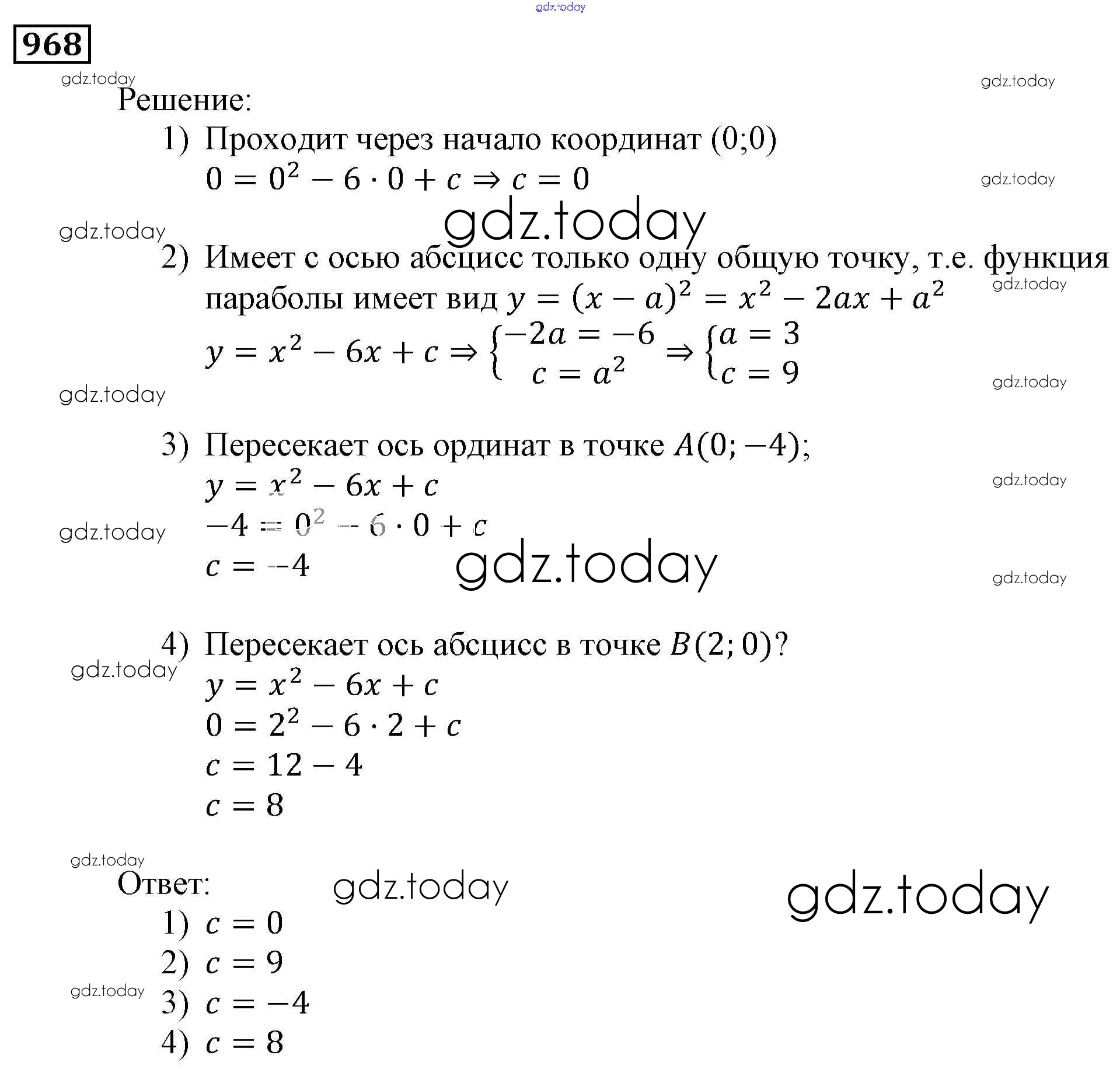 Ответы к Решение. Упражнения 968 Учебнику по Алгебре для 9 класса Мерзляк, Полонский Вентана-граф, Просвещение Алгоритм успеха 2016, 2021