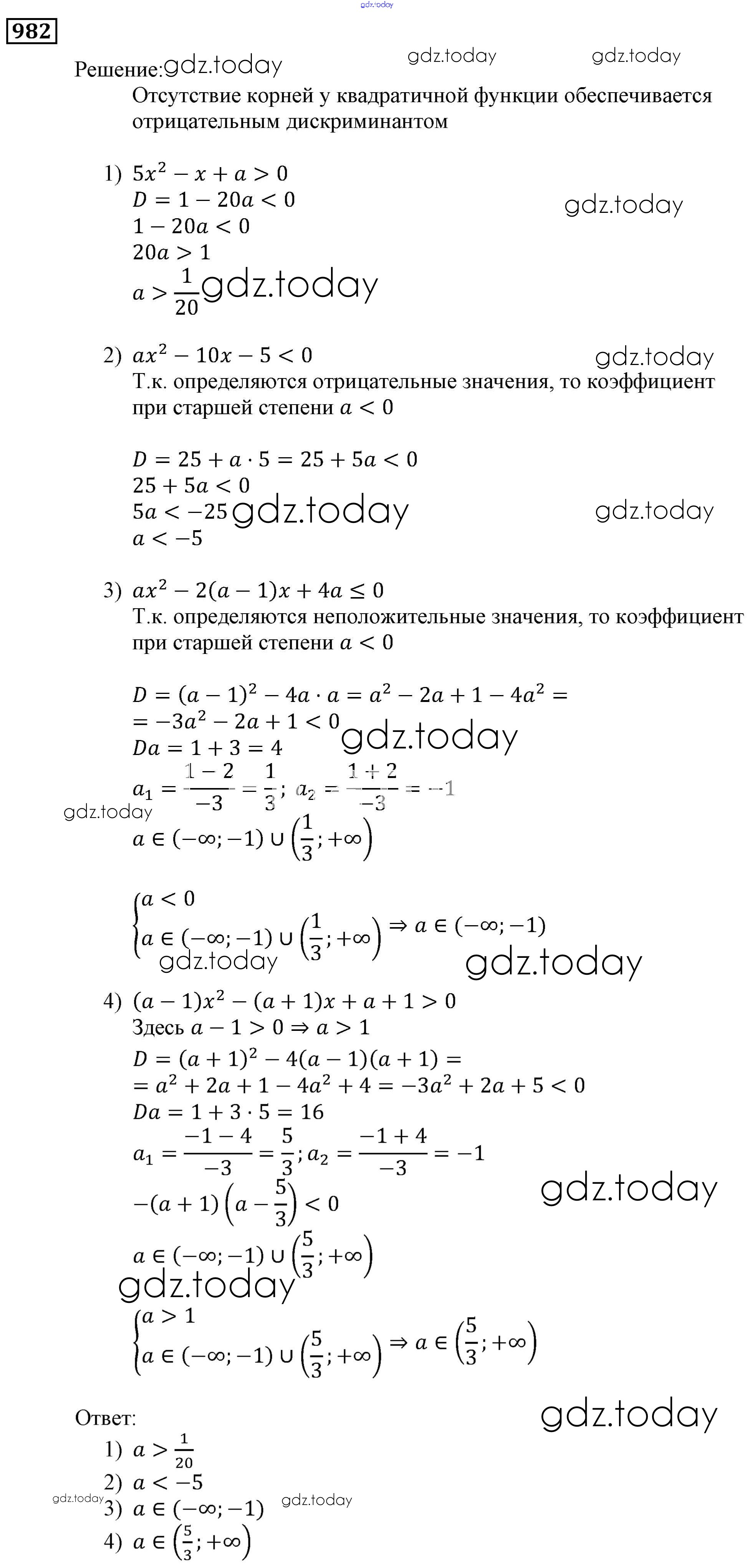 Ответы к Решение. Упражнения 982 Учебнику по Алгебре для 9 класса Мерзляк, Полонский Вентана-граф, Просвещение Алгоритм успеха 2016, 2021