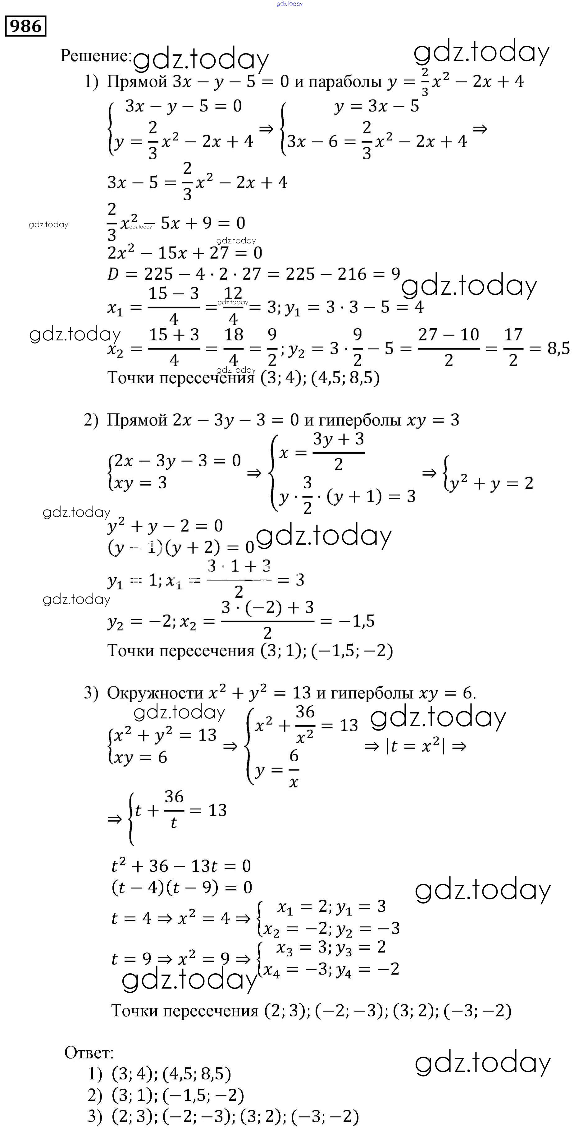 Ответы к Решение. Упражнения 986 Учебнику по Алгебре для 9 класса Мерзляк, Полонский Вентана-граф, Просвещение Алгоритм успеха 2016, 2021