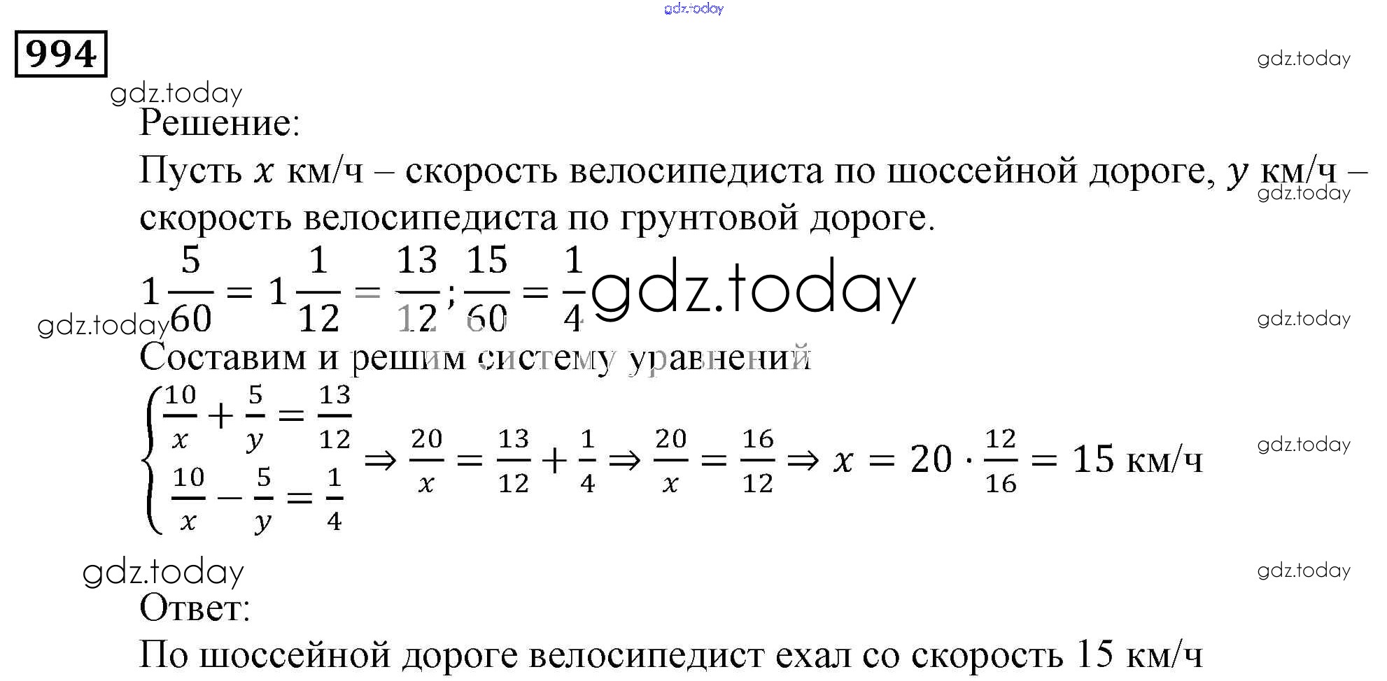 Ответы к Решение. Упражнения 994 Учебнику по Алгебре для 9 класса Мерзляк, Полонский Вентана-граф, Просвещение Алгоритм успеха 2016, 2021