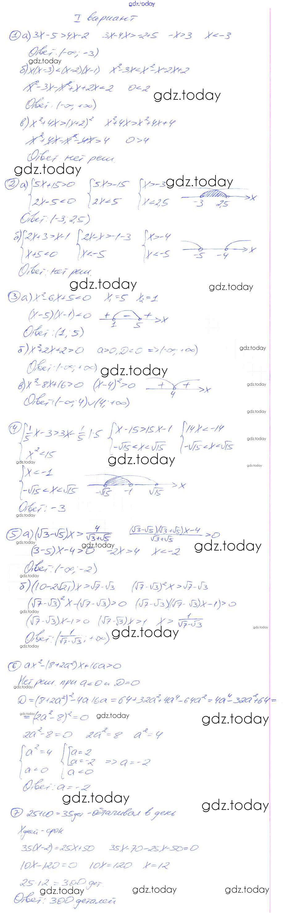 Ответы к КР №1 Решение к контрольным работам вариант 1 Дидактическим материалам по Алгебре для 9 класса Потапов, Шевкин Просвещение МГУ - школе 2010