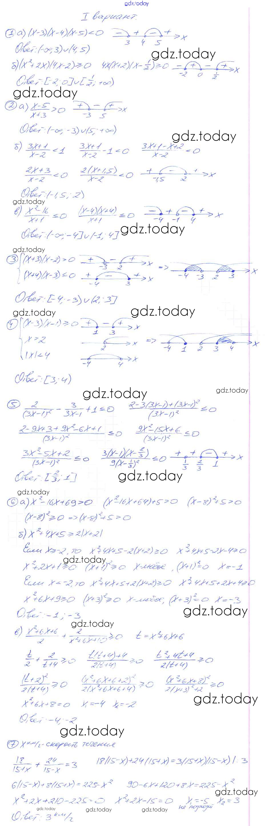 Ответы к КР №2 Решение к контрольным работам вариант 1 Дидактическим материалам по Алгебре для 9 класса Потапов, Шевкин Просвещение МГУ - школе 2010