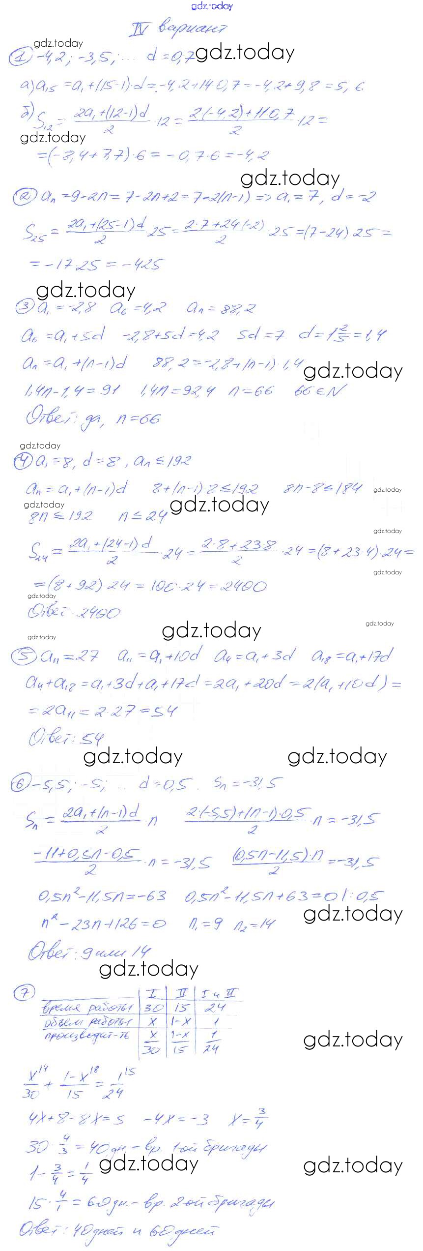 Ответы к КР №4 Решение к контрольным работам вариант 4 Дидактическим материалам по Алгебре для 9 класса Потапов, Шевкин Просвещение МГУ - школе 2010