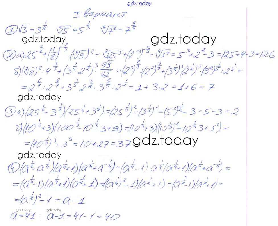 На страницах сайта gdz.today вы найдете учебный и вспомогательный материал, направленный на улучшения знаний школьной программы. ГДЗ - онлайн мир знаний СР №16. Степень с рациональным показателем Решение к самостоятельным работам вариант 1 Дидактическим материалам по Алгебре для 9 класса Потапов, Шевкин Просвещение МГУ - школе 2010