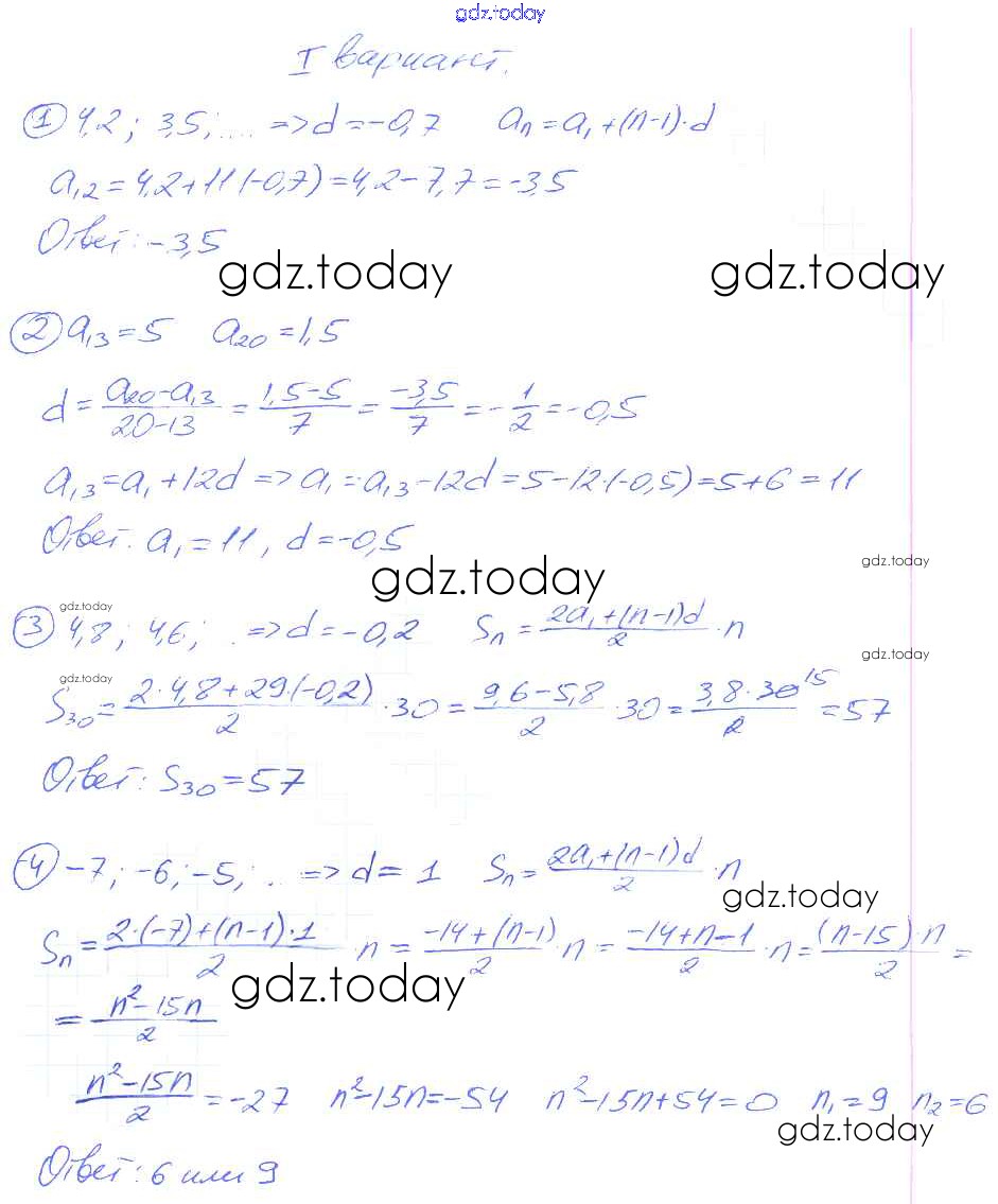 На страницах сайта gdz.today вы найдете учебный и вспомогательный материал, направленный на улучшения знаний школьной программы. ГДЗ - онлайн мир знаний СР №18. Арифметическая прогрессия Решение к самостоятельным работам вариант 1 Дидактическим материалам по Алгебре для 9 класса Потапов, Шевкин Просвещение МГУ - школе 2010