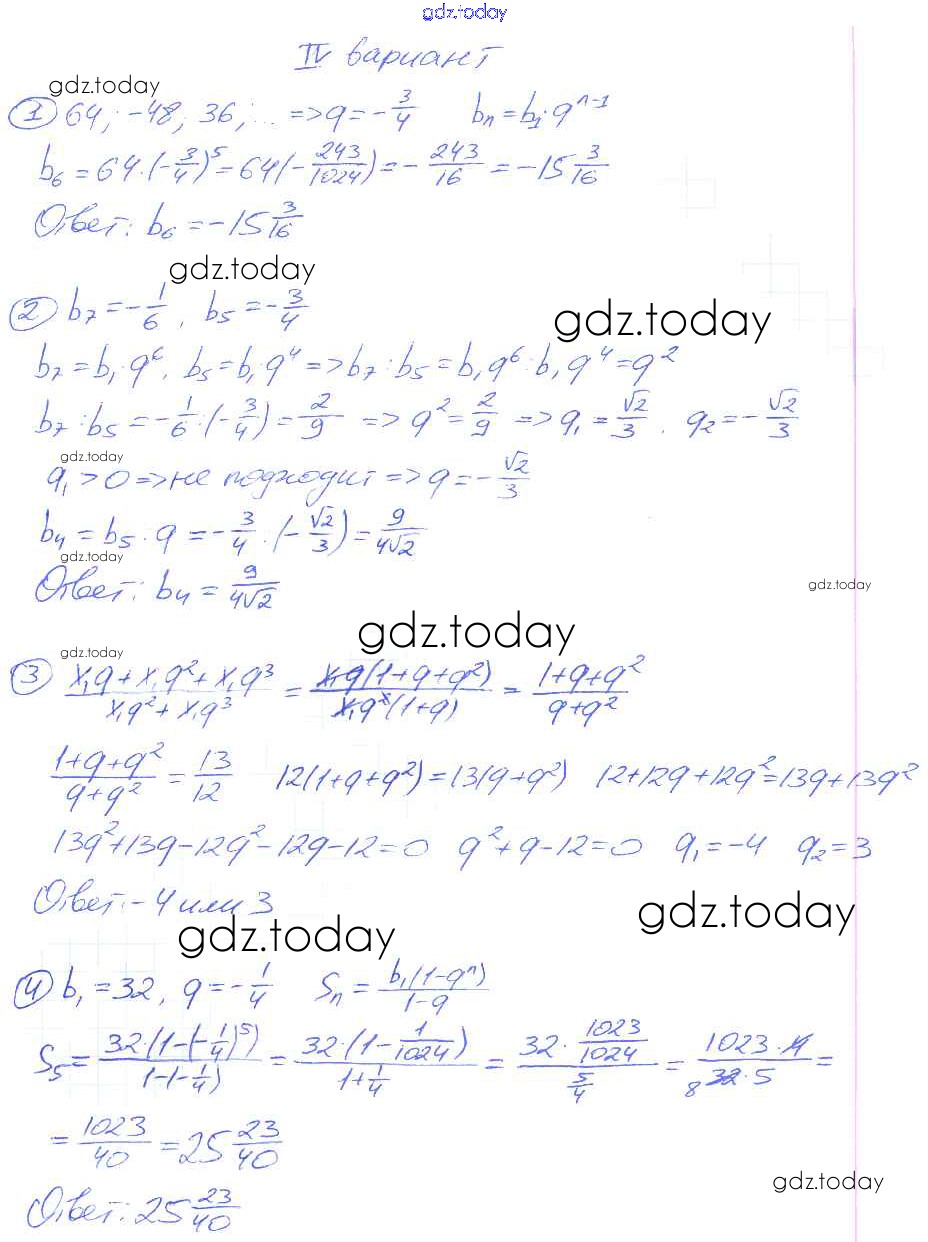 На страницах сайта gdz.today вы найдете учебный и вспомогательный материал, направленный на улучшения знаний школьной программы. ГДЗ - онлайн мир знаний СР №19. Геометрическая прогрессия Решение к самостоятельным работам вариант 4 Дидактическим материалам по Алгебре для 9 класса Потапов, Шевкин Просвещение МГУ - школе 2010