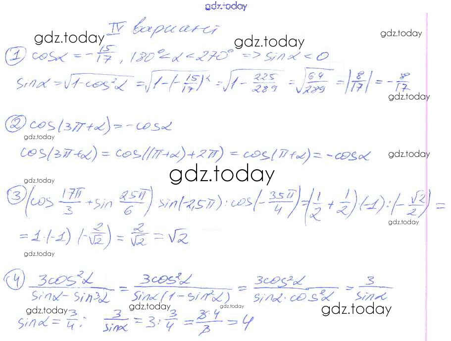 На страницах сайта gdz.today вы найдете учебный и вспомогательный материал, направленный на улучшения знаний школьной программы. ГДЗ - онлайн мир знаний СР №24. Формулы для синуса и косинуса угла Решение к самостоятельным работам вариант 4 Дидактическим материалам по Алгебре для 9 класса Потапов, Шевкин Просвещение МГУ - школе 2010