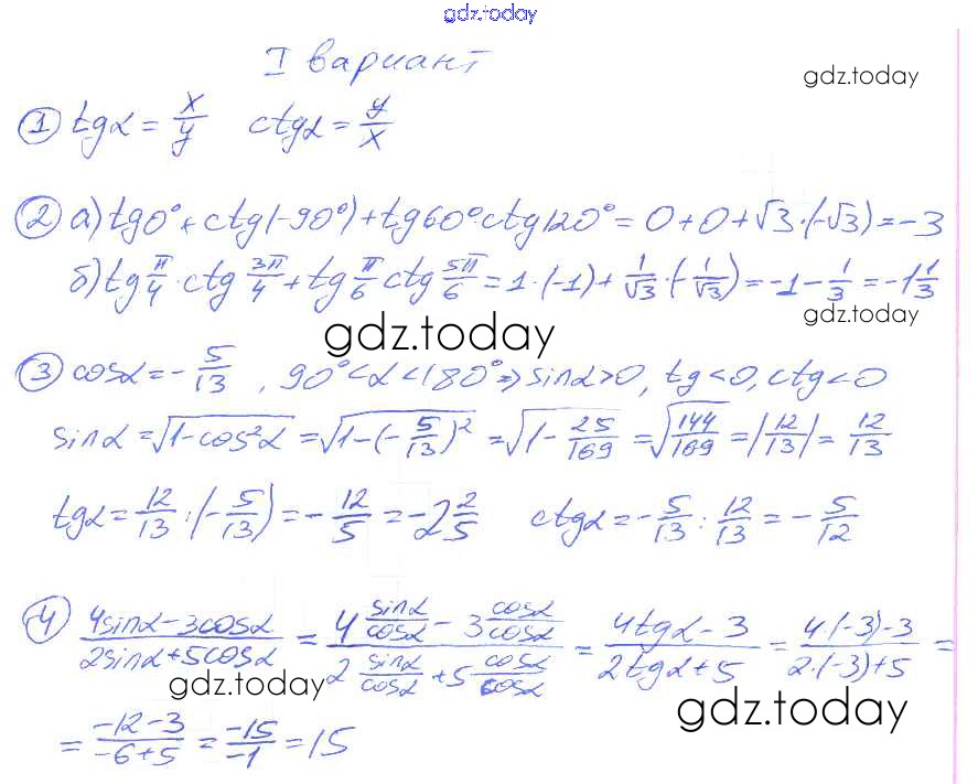На страницах сайта gdz.today вы найдете учебный и вспомогательный материал, направленный на улучшения знаний школьной программы. ГДЗ - онлайн мир знаний СР №25. Тангенс и котангенс угла Решение к самостоятельным работам вариант 1 Дидактическим материалам по Алгебре для 9 класса Потапов, Шевкин Просвещение МГУ - школе 2010