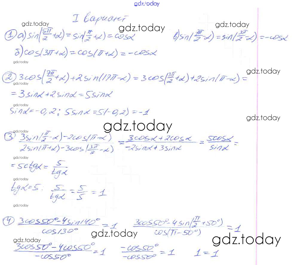На страницах сайта gdz.today вы найдете учебный и вспомогательный материал, направленный на улучшения знаний школьной программы. ГДЗ - онлайн мир знаний СР №27. Формулы приведения для синуса и косинуса Решение к самостоятельным работам вариант 1 Дидактическим материалам по Алгебре для 9 класса Потапов, Шевкин Просвещение МГУ - школе 2010