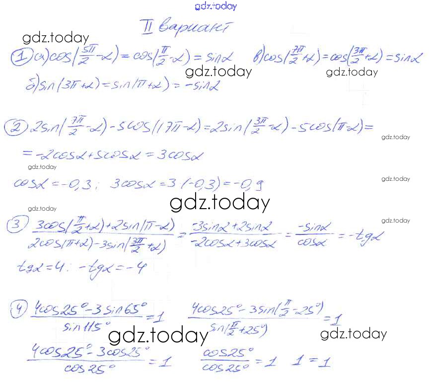 На страницах сайта gdz.today вы найдете учебный и вспомогательный материал, направленный на улучшения знаний школьной программы. ГДЗ - онлайн мир знаний СР №27. Формулы приведения для синуса и косинуса Решение к самостоятельным работам вариант 2 Дидактическим материалам по Алгебре для 9 класса Потапов, Шевкин Просвещение МГУ - школе 2010