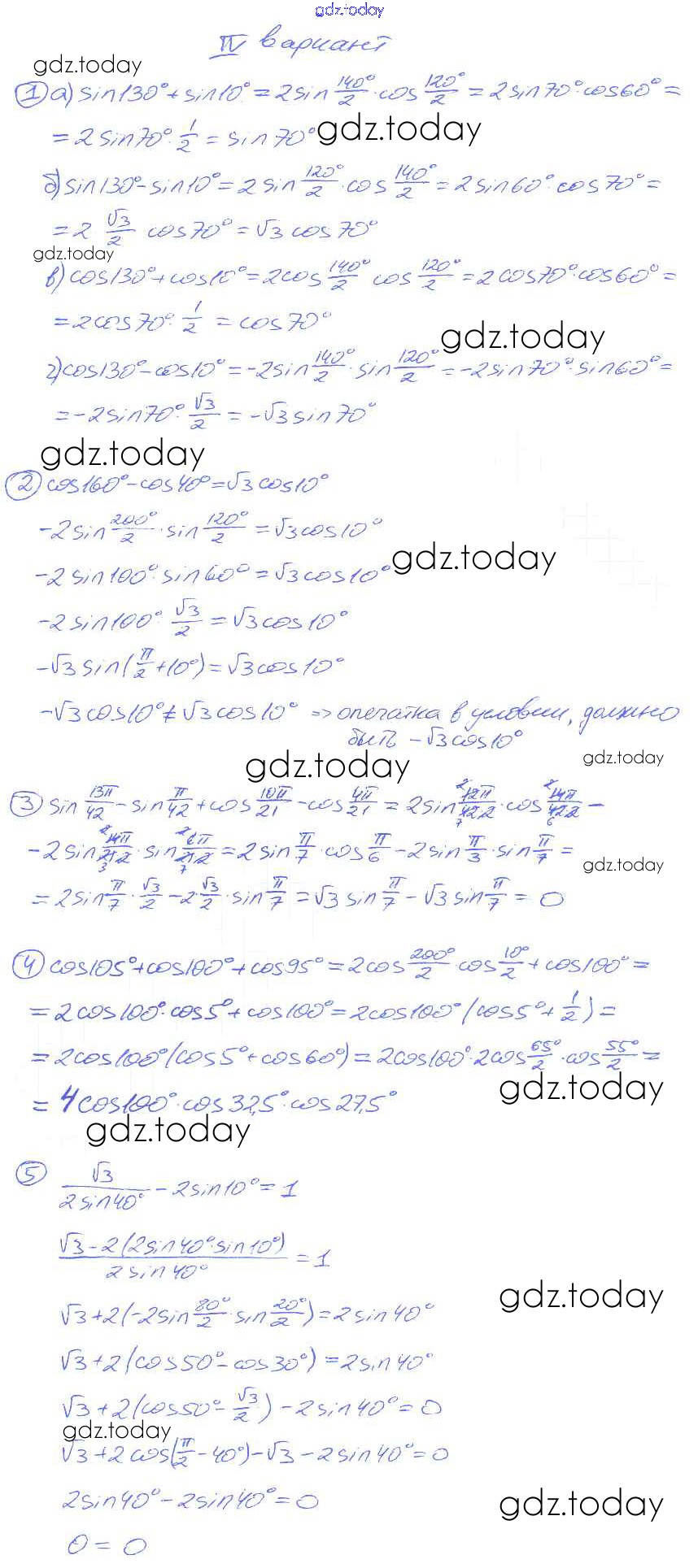 На страницах сайта gdz.today вы найдете учебный и вспомогательный материал, направленный на улучшения знаний школьной программы. ГДЗ - онлайн мир знаний СР №28. Сумма и разность синусов и косинусов Решение к самостоятельным работам вариант 4 Дидактическим материалам по Алгебре для 9 класса Потапов, Шевкин Просвещение МГУ - школе 2010